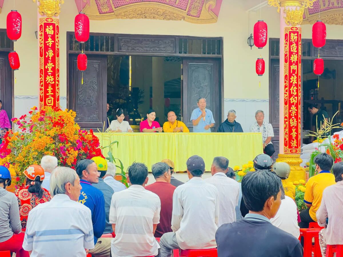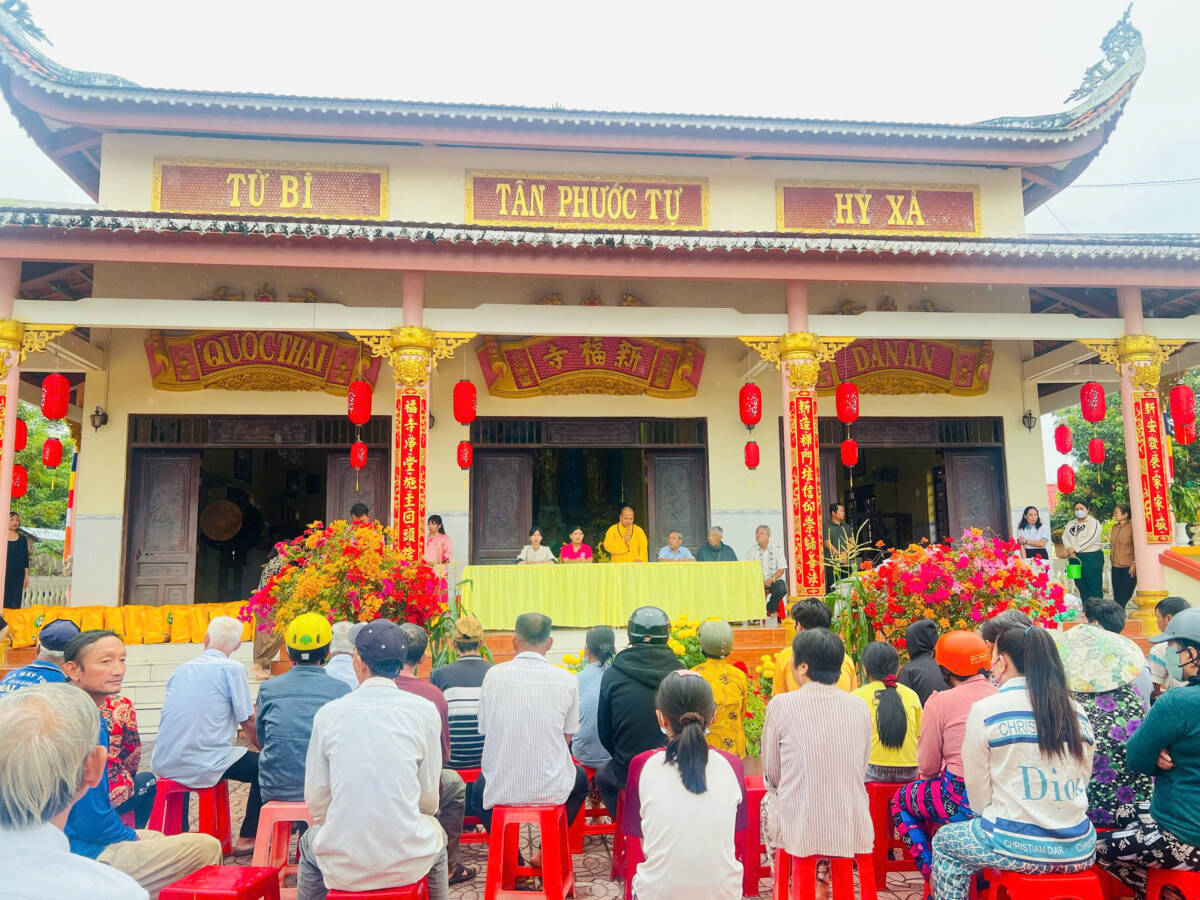 Tham dự Đại Đức Thích Huệ Nghiêm – Ủy viên BTS GHPGVN tỉnh Đồng Tháp, Chánh Thư ký Ban đại diện Phật giáo khu vực III, trụ trì chùa Tân Phước (Ấp Bình Thạnh, xã Lấp Vò), bà Huỳnh Thị Phượng – Phó chủ tịch UBMTTQVN xã, Chủ tịch HLHPN xã Lấp Vò; lãnh đạo một số phòng, ban, ngành, đoàn thể, đơn vị thuộc xã; đại diện các nhà tài trợ; các ông, bà Trưởng ban Công tác Mặt trận; Ban Nhân Dân Ấp đến dự.