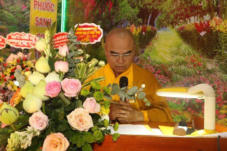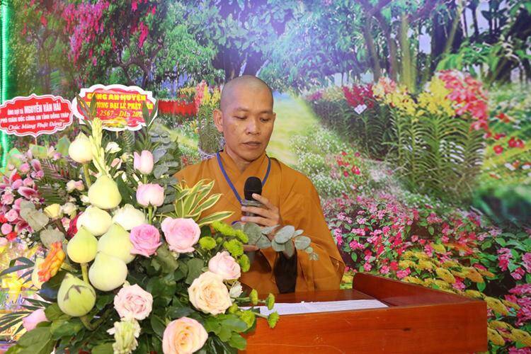Thượng Toạ Thích Tĩnh Triệt, Uỷ viên HĐTS, Phó Thường trực BTS GHPGVN tỉnh tuyên đọc Diễn văn Phật đản Phật lịch 2567 – Dương lịch 2023 của Hòa thượng, Chủ tịch hội đồng trị sự Giáo Hội Phật giáo Việt Nam. “…Đức Phật dạy chúng ta về đức hy sinh, cố gắng giúp đỡ người khác, tình nguyện cùng chia sẻ với người khác trong hoàn cảnh khó khăn, biết chấp nhận những thiệt thòi, hy sinh bản thân mà vượt qua lòng tham, sự ích kỷ để trở nên con người cao thượng, đáng quý cùng nhau xây dựng một xã hội tốt đẹp hơn.