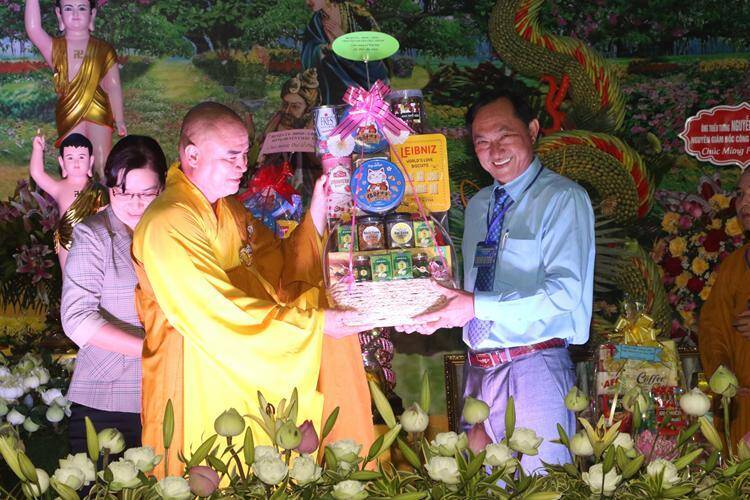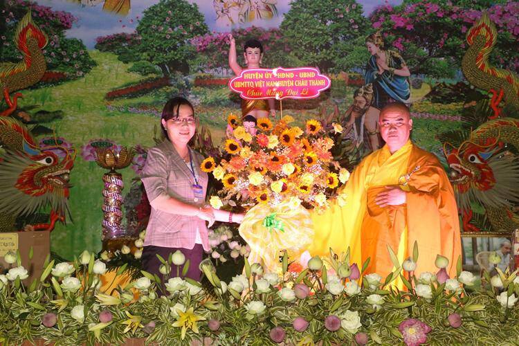 Phát biểu và tặng hoa chúc mừng tại buổi lễ ông Đỗ Nhật Định, Phó Chủ tịch UBND huyện Châu Thành, Phó Chủ tịch UBND huyện đã ghi nhận sự đóng góp của Giáo Hội Phật giáo Việt Nam huyện trong thời gian qua, đồng thời đồng chí mong muốn các Tăng, Ni, phật tử trong huyện luôn đoàn kết gắn bó và tăng cường mối quan hệ đồng đạo. Tiếp tục phát huy kết quả đã đạt được, tăng cường hơn nữa sự đoàn kết hòa hợp, thực hiện mục tiêu “Hoằng dương Phật pháp, lợi lạc quần sinh”; vận động phật tử và nhân dân thực hiện tốt các đường lối chủ trương của Đảng, chính sách pháp luật của Nhà nước; thực hiện có hiệu quả hơn nữa các phong trào thi đua yêu nước, các Cuộc vận động sống tốt đời, đẹp đạo, chung sức xây dựng nông thôn mới, nông thôn mới kiểu mẫu, hoàn thành thắng lợi các nhiệm vụ, mục tiêu kinh tế- xã hội, góp phần xây dựng huyện ngày càng giàu mạnh.