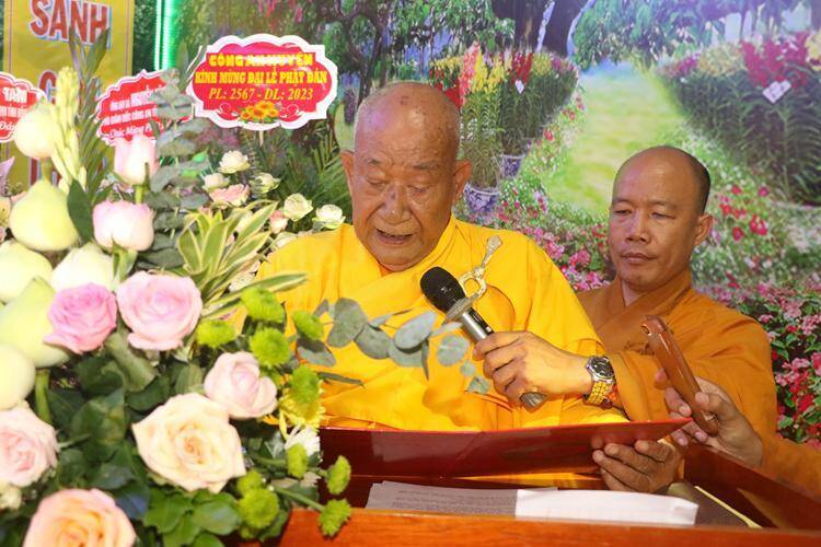 Tại buổi lễ Hoà Thượng Thích Nhật Quang, Thành viên HĐCM GHPGVN, Chứng Minh BTS GHPGVN tỉnh Đồng Tháp đã đọc Thông điệp Phật đản Phật lịch 2567 – Dương lịch 2023 của Đức Pháp chủ Giáo Hội Phật giáo Việt Nam. “…Mùa Phật đản Phật lịch 2567 trở về, người con Phật khắp năm châu lại được hân hoan đón mừng ngày Đấng Đạo sư thị hiện ở đời vì hạnh phúc, vì an lạc cho số đông, vì lợi ích cho chư Thiên và loài người. Đây là dịp cho tất cả chúng ta cùng ôn lại lịch sử của Đức Phật Bản sư Thích Ca Mâu Ni, là cơ hội để mọi người chiêm nghiệm, sống theo lời dạy chân thực, có giá trị vượt thời gian của Ngài. Những lời dạy đó gợi ý các giải pháp xây dựng nền hòa bình thế giới, hạnh phúc thực sự cho con người và sự phát triển bền vững cho xã hội…”.