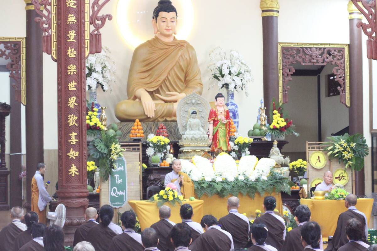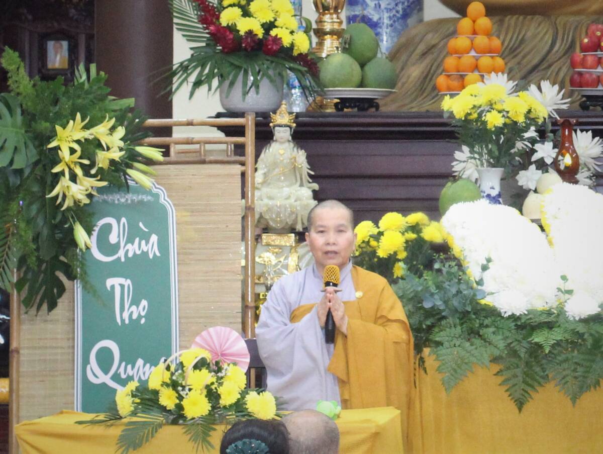Quang lâm chứng minh lễ có Ni trưởng Thích nữ Như Ngôn – viện chủ chùa Thọ Quang, Trưởng Ban Tổ chức; Ni sư Thích nữ Như Lan – Trụ trì chùa Thọ Quang, phó ban tổ chức; cùng chư tôn đức ni, Ban Giảng huấn, Giáo thọ và 127 hành giả tham dự khoá tu.