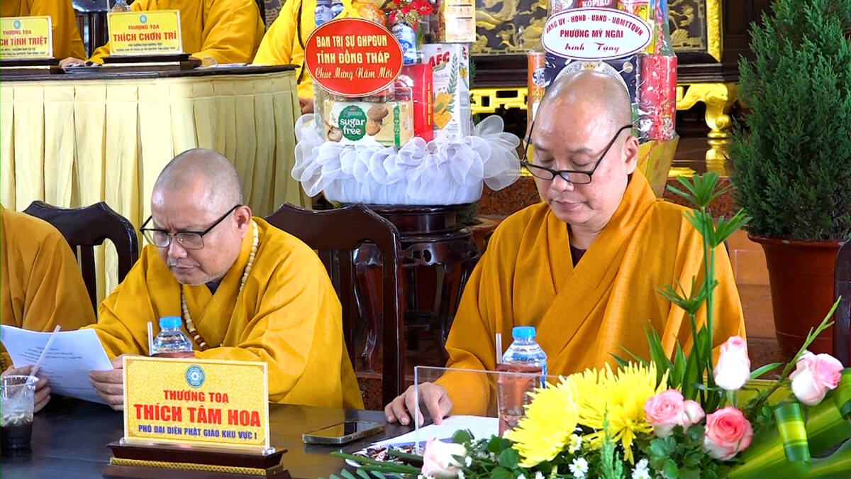 Hội nghị vinh dự đón tiếp sự quang lâm chứng minh của HT. Thích Phước Thông – Thành viên Hội đồng Chứng minh, Chứng minh BTS GHPGVN tỉnh; TT. Thích Tĩnh Triệt – UV HĐTS, Trưởng ban BTS GHPGVN tỉnh Đồng Tháp; TT. Thích Chơn Trí – Phó Trưởng ban Thường trực BTS GHPGVN tỉnh Đồng Tháp; TT. Thích Minh Thuần – Trưởng Ban Giáo dục Phật giáo tỉnh Đồng Tháp, Trưởng Đại diện Khu vực I, trưởng ban tổ chức; ĐĐ. Thích Huệ Phát – Phó Trưởng Ban Kiêm Chánh Thư ký BTS GHPGVN tỉnh; chư Tôn đức Trưởng đại diện các khu vực, chư Tôn đức Tăng Ni trụ trì các tự viện.