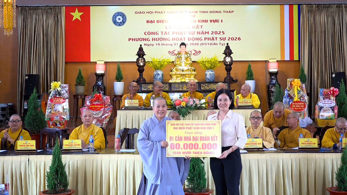Đặc biệt, hưởng ứng lời kêu gọi của Ủy ban MTTQ Việt Nam tỉnh Đồng Tháp về việc chung tay xóa nhà tạm, tại buổi lễ, Đại diện Phật giáo Khu vực 1 đã trao tặng 01 căn nhà tình thương trị giá 60 triệu đồng.