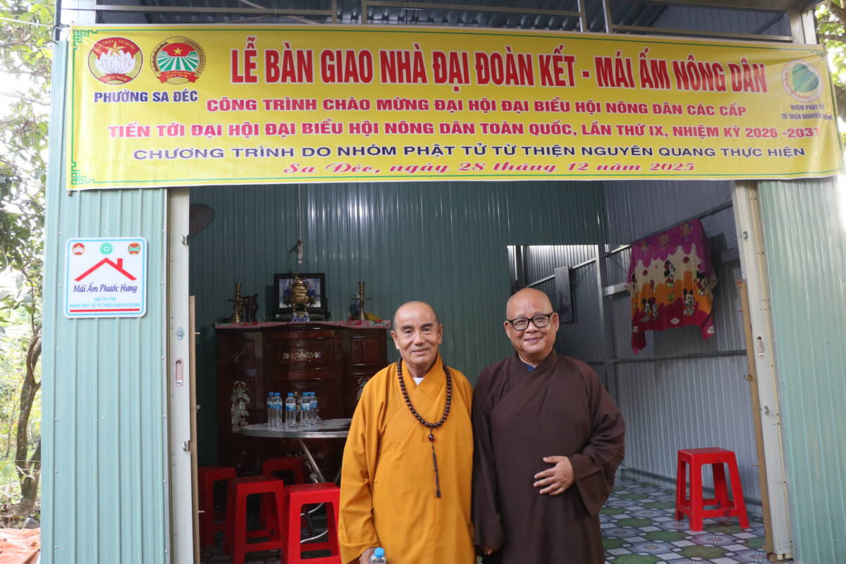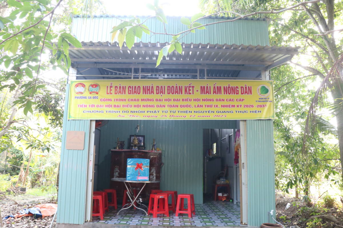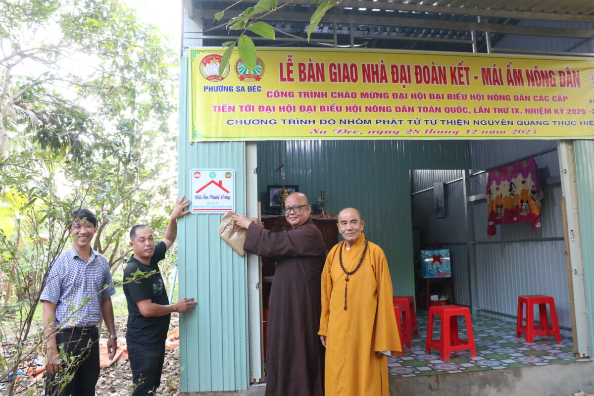 PGĐS – Theo lời kêu gọi của Mặt trận tổ Quốc Việt Nam phường Sa Đéc, tỉnh Đồng Tháp. Theo tinh thần đoàn kết cùng dân tộc dân tộc. Sáng này 28 tháng 12 năm 2025 (nhằm 9/11.Ất Tỵ), đạo tràng chùa Phước Đức, phường Sa Đéc, kết hợp cùng nhóm Phật tử từ thiện Nguyên Quang cùng quý mạnh thường quân chính quyền địa phương tổ chức lễ bàn giao nhà đại đoàn kết – mái ấm nông dân cho hộ có hoàn cảnh khó khăn.