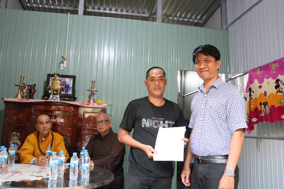 Đại diện cho mạnh thường quân TT. Thích Thiện Hữu cho biết: Phật giáo Việt Nam từ xưa đến nay luôn đồng hành cùng dân tộc, lúc thịnh lúc suy Phật giáo luôn có mặt. Trên tinh thần đó, Phật giáo tỉnh đặc biệt quan tâm đến công tác chăm lo đời sống người dân khó khăn tại địa phương. Thượng tọa cũng chúc mừng gia đình anh Lê Thanh Tùng khi nhận được căn nhà mới, có chỗ ở khang trang, giảm bớt khó khăn trong cuộc sống, cố gắng từng bước vươn lên.