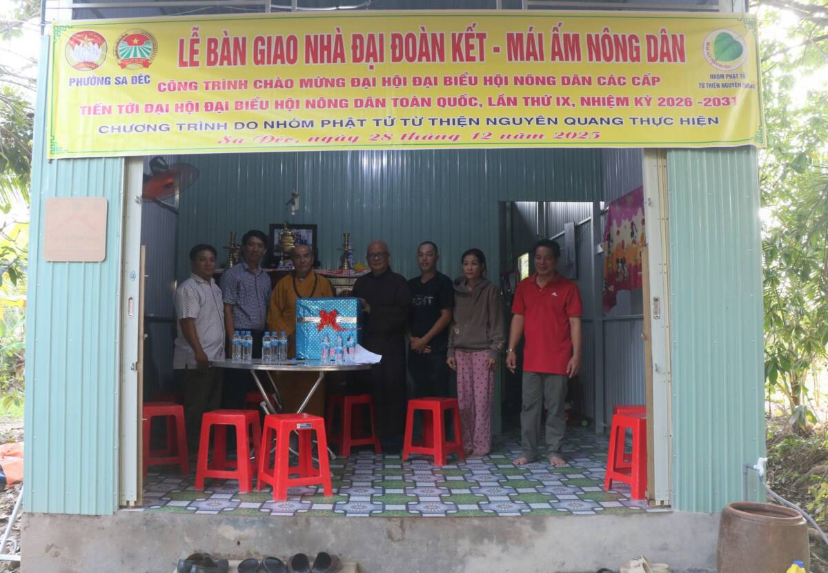 PGĐS – Theo lời kêu gọi của Mặt trận tổ Quốc Việt Nam phường Sa Đéc, tỉnh Đồng Tháp. Theo tinh thần đoàn kết cùng dân tộc dân tộc. Sáng này 28 tháng 12 năm 2025 (nhằm 9/11.Ất Tỵ), đạo tràng chùa Phước Đức, phường Sa Đéc, kết hợp cùng nhóm Phật tử từ thiện Nguyên Quang cùng quý mạnh thường quân chính quyền địa phương tổ chức lễ bàn giao nhà đại đoàn kết – mái ấm nông dân cho hộ có hoàn cảnh khó khăn.