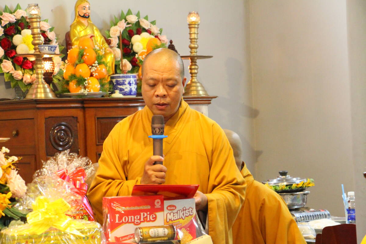 Thượng tọa Thích Trí Khả – phó Thư ký, phó Văn phòng BTS GHPGVN tỉnh tuyên đọc quyến định của Ban Trị sự GHPGVN tỉnh Đồng Tháp về việc bổ nhiệm trụ trì chùa Phước Hòa – xã Tân Dương, tỉnh Đồng Tháp, do Đại đức Thích Phước Tâm đảm nhiệm chức vụ trụ trì.