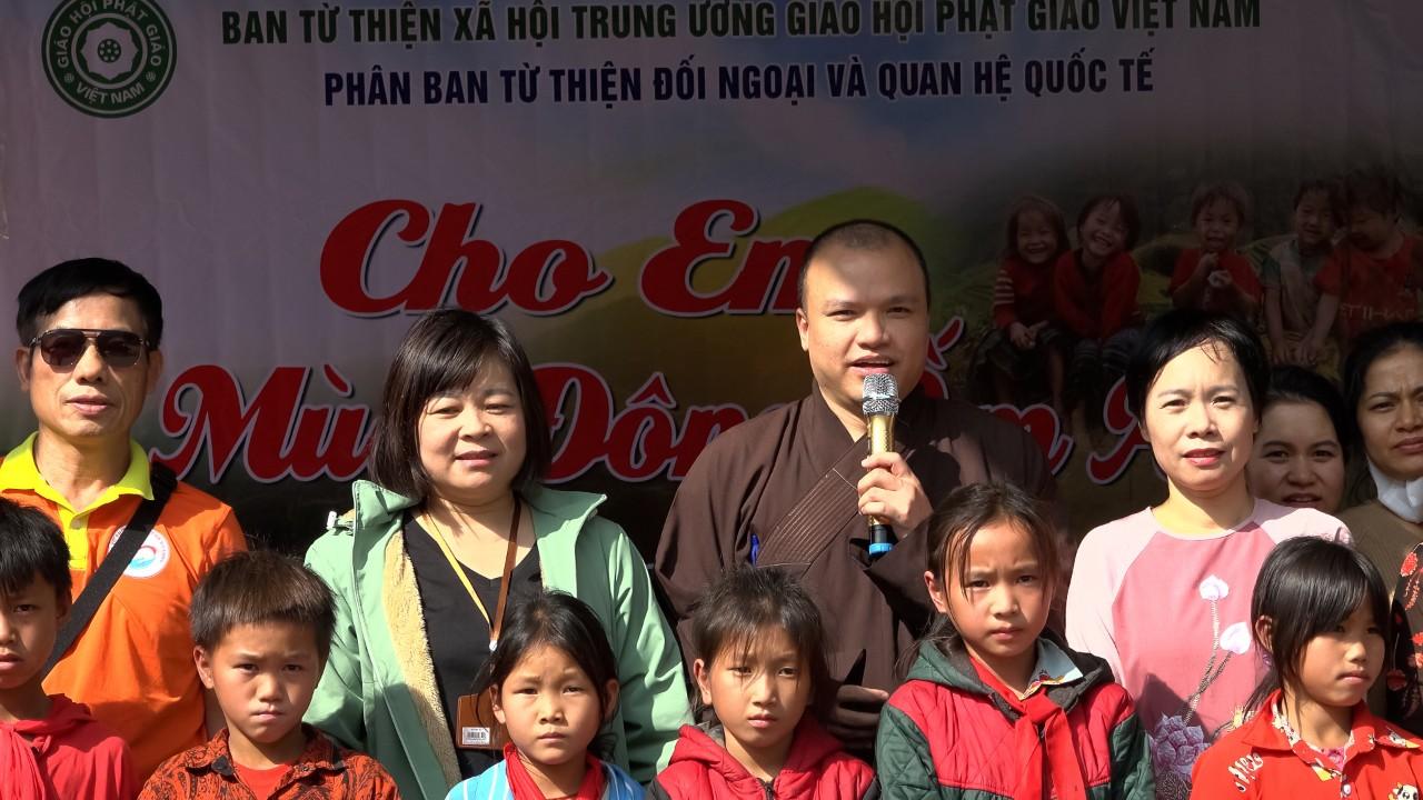 Tại trường Tiểu học bán trú Lũng Hồ huyện Yên Minh Đại Đức Thích Trúc Thái Cang Ủy viên TT Phân ban TTĐN&QHQT trưởng đoàn từ thiện đã thăm hỏi động viên chia sẻ cùng thầy trò nhà trường. Chư Tôn đức cùng các thành viên trong đoàn đã trao tặng tận tay các em hơn 600 xuất quà, mỗi phần quà gồm áo ấm mùa đông, dày dép áo đồng phục, một thùng mỳ và bánh kẹo trị giá 250 ngàn đồng, cũng tại đây Đại Đức Thích Trúc Thái cang đã chia sẻ những lời pháp thoại ý nghĩa cầu mong sự an ấm áp, an lành đến với thầy và trò nhà trường, trước hết là những ngày mùa đông giá lạnh nơi biên cương này.