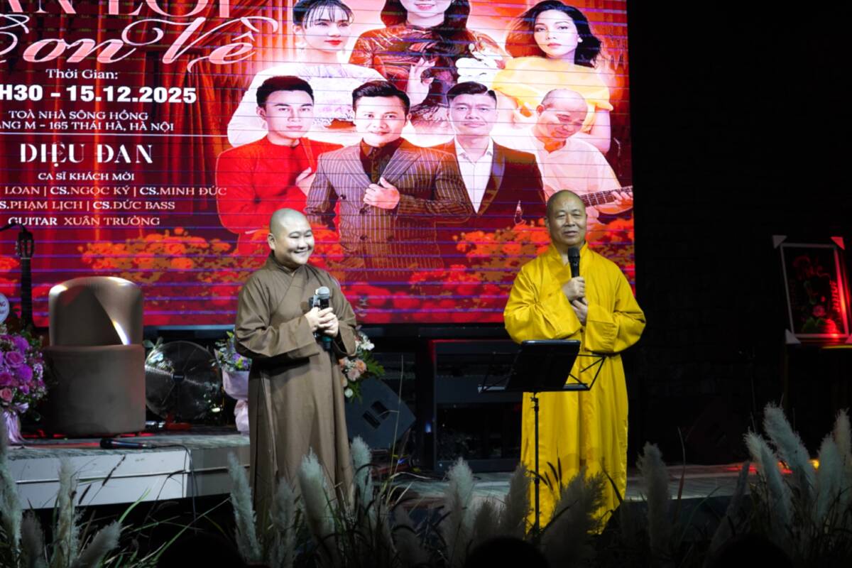 PGĐS – Tối nay ngày 15/12/2025 ( nhằm ngày 26-10 âm lịch năm Ất Tỵ ) tại phòng trà Triexie – 165 Thái Hà… Ca sĩ Phật Giáo Diệu Đan cùng các văn nghệ sĩ đã tiếp tục đêm ca nhạc thứ 2 để hướng về miền Trung ruột thịt, cùng sẻ chia nỗi đau mà đồng bào miền Trung đang phải oằn mình gánh chịu vì mưa lũ. Chương trình ca nhạc với mong muốn kêu gọi sự chung tay giúp đỡ cũng như toàn bộ số tiền kêu gọi tổ chức đêm nhạc đầu tiên với chủ đề ” Vì Miền Trung Yêu Dấu” tại Luật Mật Viên Thắng Nghiêm – chùa Khúc Thuỷ cũng như trong đêm nghệ thuật lần thứ 2 chương trình “Dẫn Lối Con Về ” sẽ gửi tới bà con vùng lũ khó khăn.