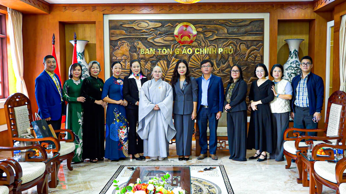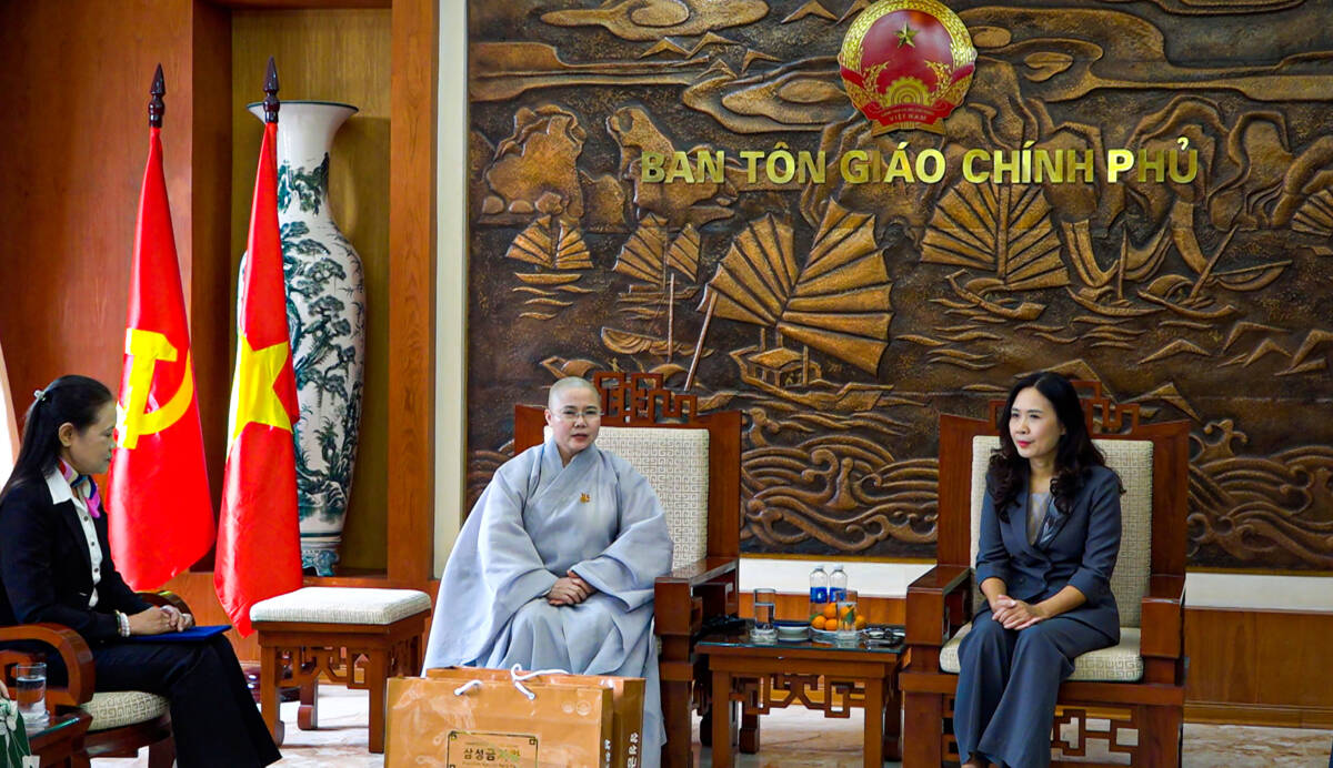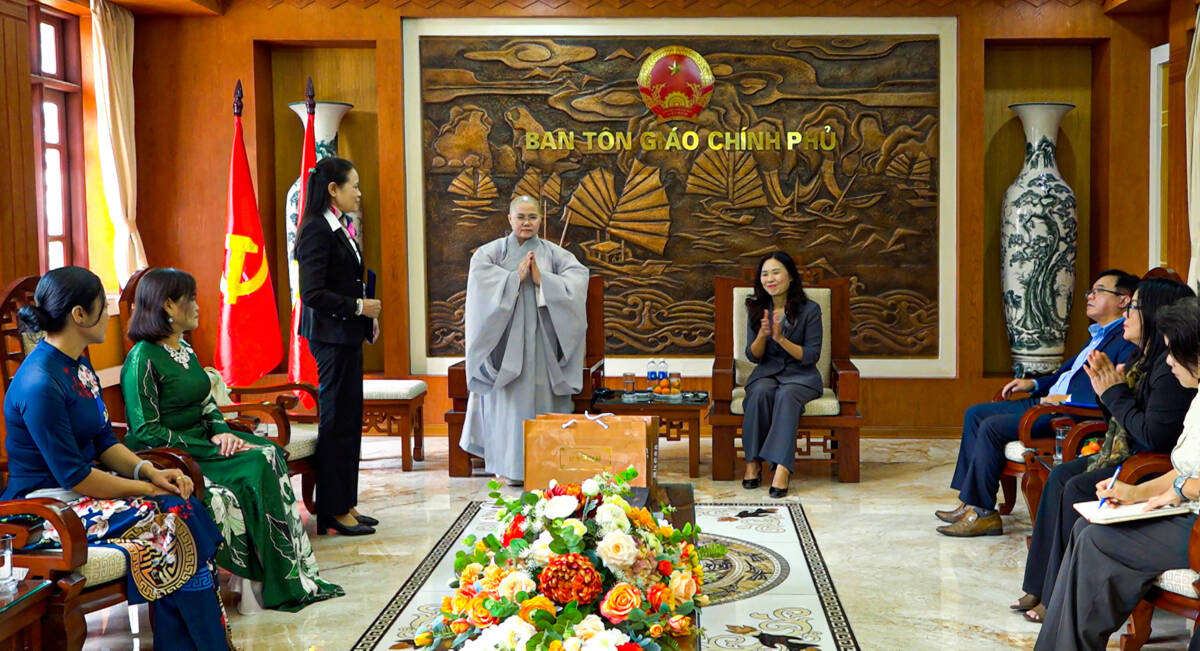 Buổi tiếp diễn ra trọng thị tại Hội trường tiếp khách Quốc tế của Ban Tôn giáo, với sự đón tiếp thân tình của bà Trần Thị Minh Nga, Phó Trưởng ban Ban Tôn giáo Chính phủ, các thành viên của Vụ Phật giáo. Trong không khí ấm áp, chân tình, hai bên đã có buổi gặp gỡ thắm đượm tình người, cùng trao đổi về những vấn đề quan tâm chung liên quan đến hoạt động tôn giáo, văn hóa và công tác Phật sự trong và ngoài nước.
