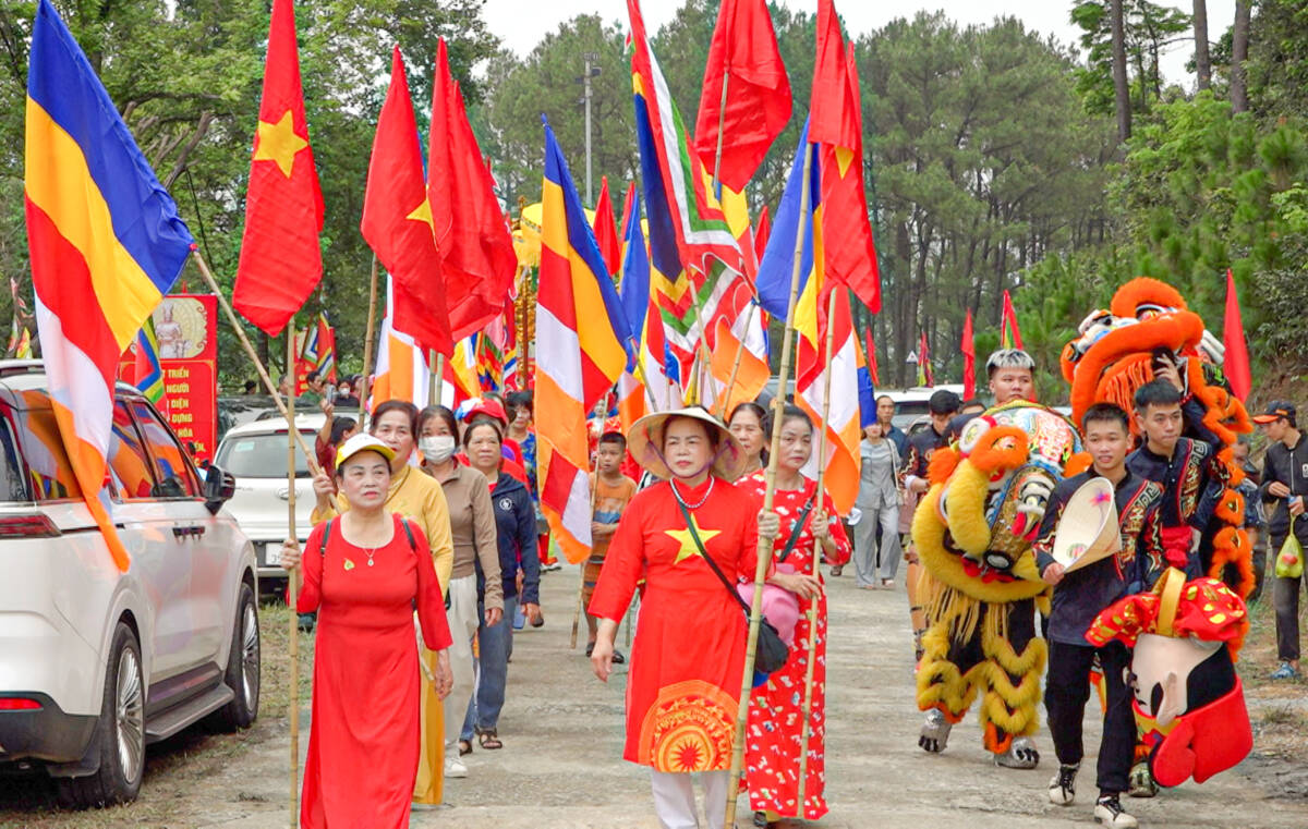 Lễ rước kiệu từ chùa Đại Hùng lên đỉnh núi nơi thờ đức Thủy tổ thần long được diễn ra ngày 9/3.