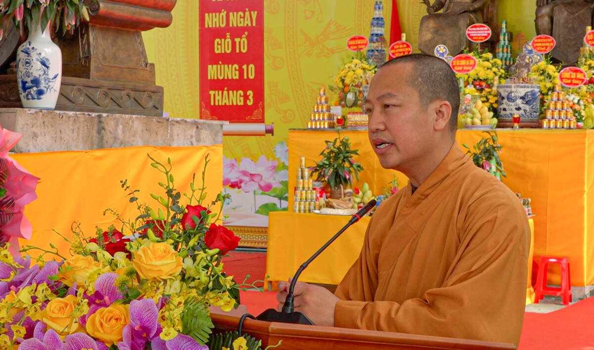 Phát biểu tại buổi lễ, Đại đức Thích Thanh Vượng – Trụ trì Chùa Đại Hùng nhấn mạnh ý nghĩa của ngày Giỗ Tổ Hùng Vương trong đời sống văn hóa – tâm linh dân tộc. Tri ân các vị lãnh đạo và nhân dân Hà Tĩnh trong thời gian đã chung tay đoàn kết cùng nhà chùa xây dựng Di tích ngày một khang trang xứng tầm với giá trị lịch sử. Đại đức khẳng định Phật giáo Việt Nam nói chung, Chư tăng và Phật tử chùa Đại Hùng nói riêng luôn hòa mình cùng dân tộc, chung tay gìn giữ và phát huy các giá trị truyền thống, bồi đắp đạo đức, hướng con người đến đời sống thiện lành, đoàn kết và phụng sự xã hội.