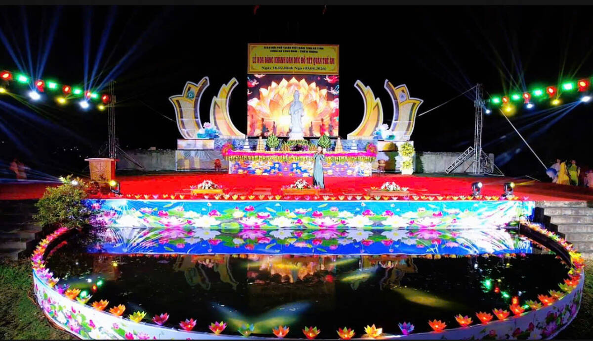 PGĐS – Trong không gian thanh tịnh của những ngày tháng Hai âm lịch, khi hơi thở của mùa xuân vẫn còn vương vấn trên từng nhành cây kẽ lá, chùa Hạ Long Đàm (phường Bắc Hồng, thị xã Hồng Lĩnh, tỉnh Hà Tĩnh) đã trở thành điểm hội tụ của niềm tin và lòng từ bi. Tối ngày 16/02 năm Bính Ngọ (nhằm ngày 03/4/2026), hàng nghìn trái tim đã cùng nhịp đập trong lễ hoa đăng trang nghiêm kính mừng khánh đản Đức Bồ Tát Quán Thế Âm – bậc Đại sĩ biểu trưng cho hạnh nguyện cứu khổ độ sinh.