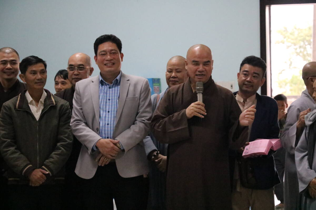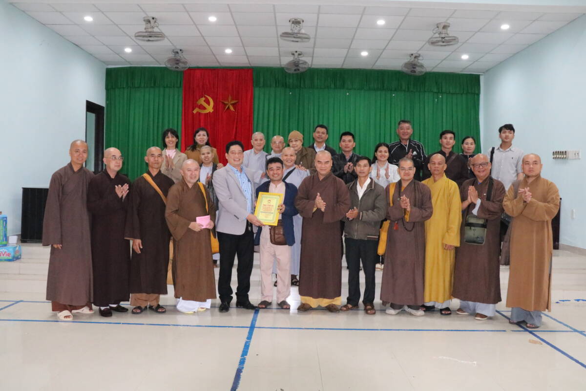Đoàn do Thượng tọa Thích Tĩnh Triệt – Ủy viên HĐTS, Trưởng BTS GHPGVN tỉnh Đồng Tháp làm trưởng đoàn; TT. Thích Chơn Trí – Phó Trưởng ban Thường trực BTS kiêm Trưởng Ban TT-XH GHPGVN tỉnh; TT. Thích Trung Chánh – Phó BTS GHPGVN tỉnh; ĐĐ. Thích Huệ Phát; quý chư Tôn đức Tăng Ni và Phật tử tỉnh tháp tùng cùng đoàn.