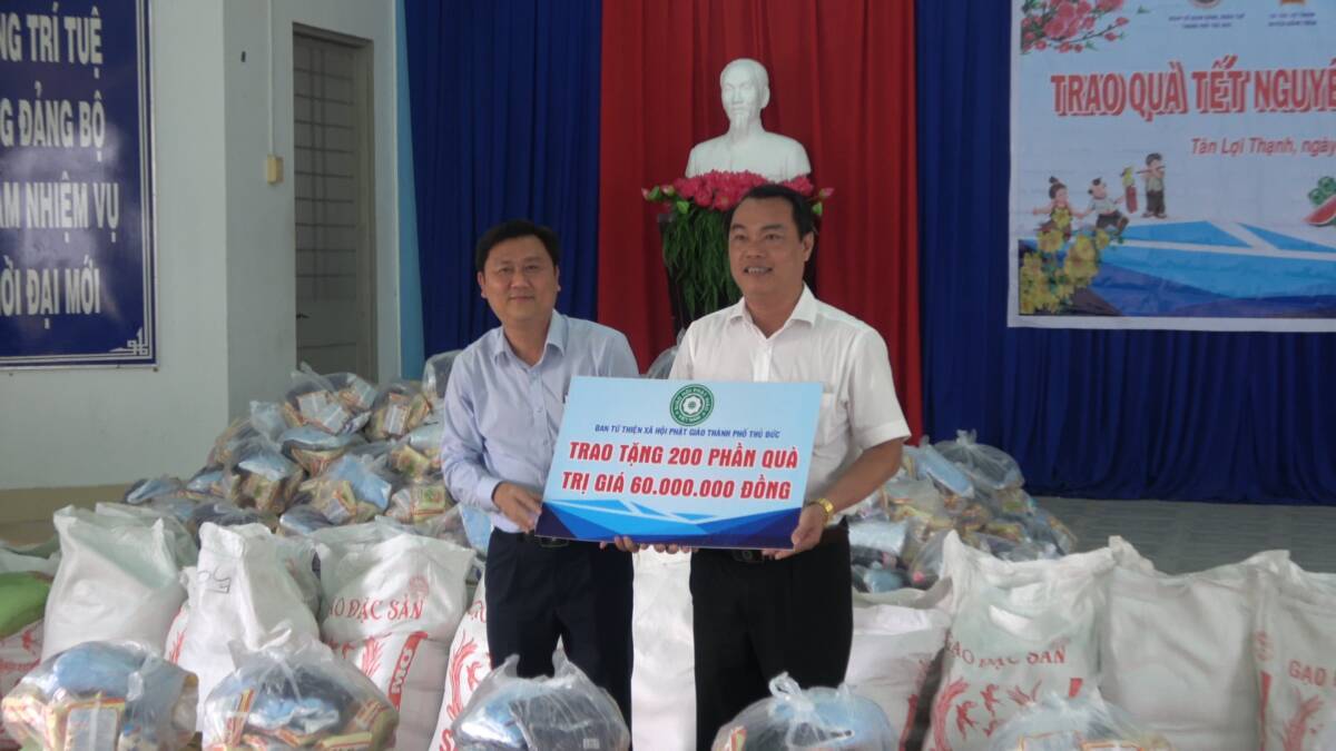 PGĐS – Ngày 31/12/2022, Được sự chỉ đạo và hướng dẫn của Hòa thượng Thích Thiện Minh – Trưởng Ban Trị sư Giáo hội Phật giáo Việt Nam TP.Thủ Đức hướng tới Xuân Ấm Tình Người chương trình trao 1500 phần quà cho đồng bào dân tộc miền tây Nam Bộ, do ĐĐ Thích An Nguyện – Ủy viên BTS GHPGVN TPHCM kiêm trưởng ban từ thiện xã hội Ban Trị sự GHPGVN TP Thủ Đức phối hợp các ban ngành đoàn thể tổ chức đã trao 200 suất quà Tết cho hộ nghèo, hộ có hoàn cảnh khó khăn trên địa bàn xã Tân Lợi Thạnh. Tổng giá trị các phần quà được trao là trên 100 triệu.