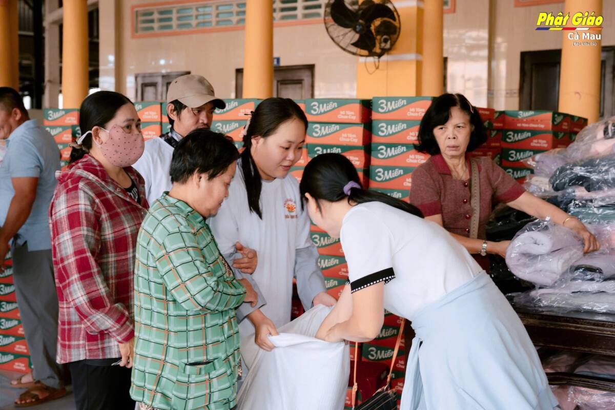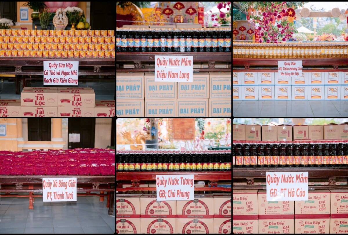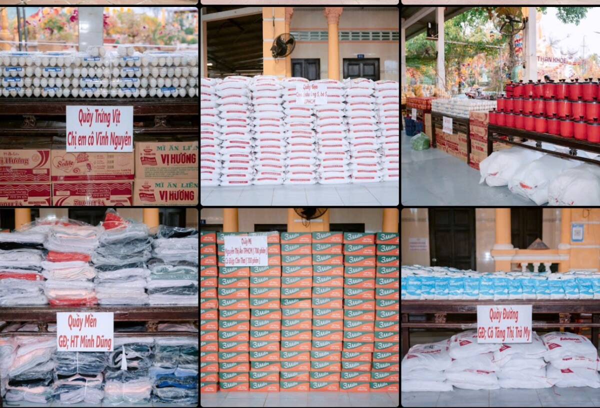 Phiên chợ được bố trí 22 gian hàng với nhiều mặt hàng thiết yếu phục vụ miễn phí như gạo, mì, dầu ăn, nước tương, bánh mứt… Không khí mua sắm tuy giản dị nhưng chan chứa tiếng cười, niềm vui, nhờ sự hỗ trợ tận tình của đội ngũ tình nguyện viên và Phật tử phụng sự.