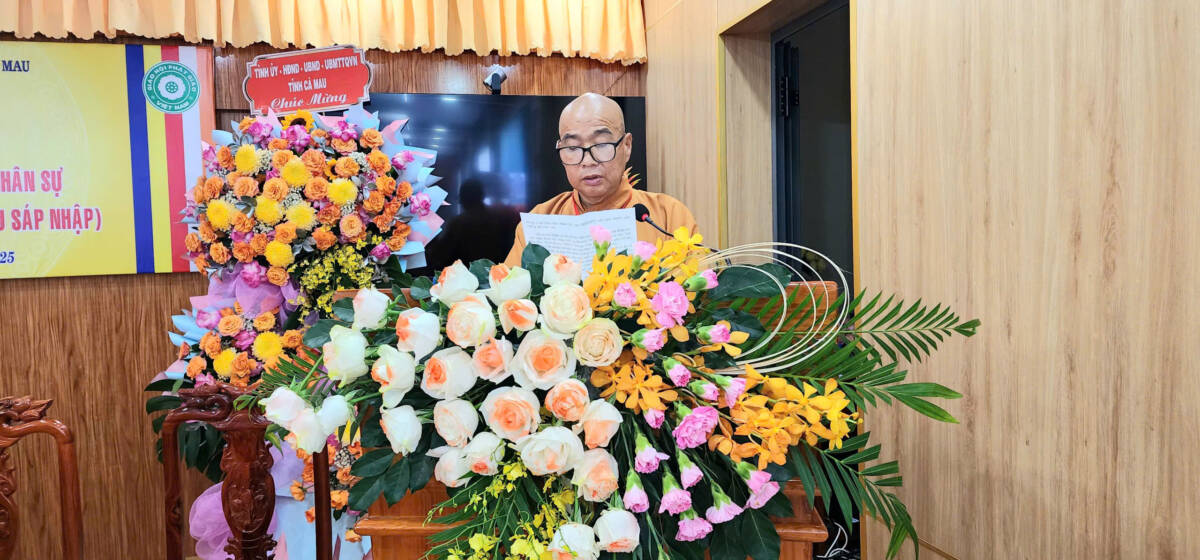 Phát biểu chỉ đạo, Hòa thượng Thích Huệ Thông – Phó chủ tịch HĐTS, Trưởng ban Pháp chế T.Ư, thay mặt HĐTS chúc mừng Ban Trị sự GHPGVN tỉnh Cà Mau, Hòa thượng mong rằng: Trong tinh thần đoàn kết, phụng sự đạo pháp, Ban Trị sự Phật giáo Cà Mau sau sáp nhập sẽ tiếp tục đảm nhiệm vai trò nòng cốt trong việc triển khai các công tác Phật sự tại địa phương. Sự kiện này mang ý nghĩa đặc biệt quan trọng, đánh dấu bước chuyển mình mạnh mẽ và quyết đoán của Giáo hội trong tiến trình tinh gọn tổ chức, nâng cao hiệu lực hành chính Phật sự, đồng thời thể hiện sự thích ứng linh hoạt trước yêu cầu đổi mới quản lý tôn giáo trong bối cảnh hiện đại.