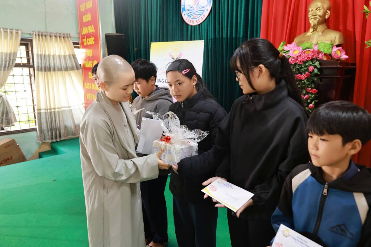 Mỗi phần quà được trao đi là kết tinh của tâm nguyện phụng sự, là sự hội tụ của lòng từ bi, trí tuệ và trách nhiệm xã hội của chư Tôn đức, quý mạnh thường quân và các nhà hảo tâm. Qua đó, không chỉ góp phần chia sẻ khó khăn vật chất, mà còn gieo duyên lành, tiếp thêm niềm tin và nghị lực cho người dân và các em học sinh trên hành trình hướng thiện, vươn lên trong cuộc sống.
