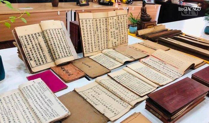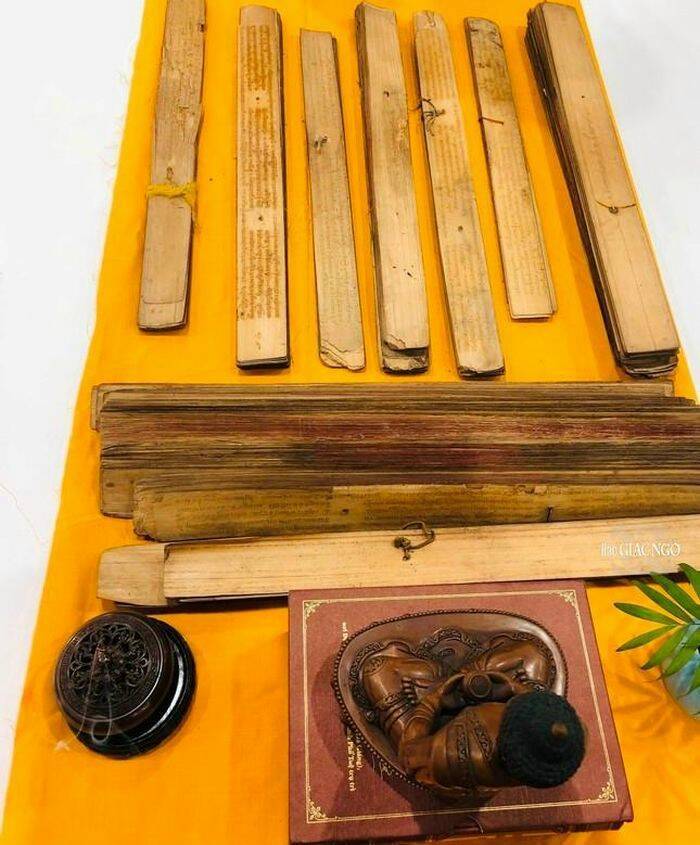 Đặc biệt tại sự kiện còn trưng bày mộc bản kinh Phật được khắc trên gỗ thị và kinh viết trên lá bối.
