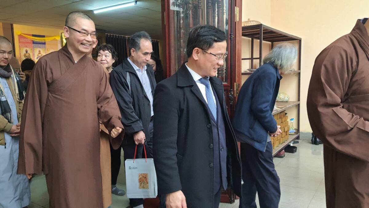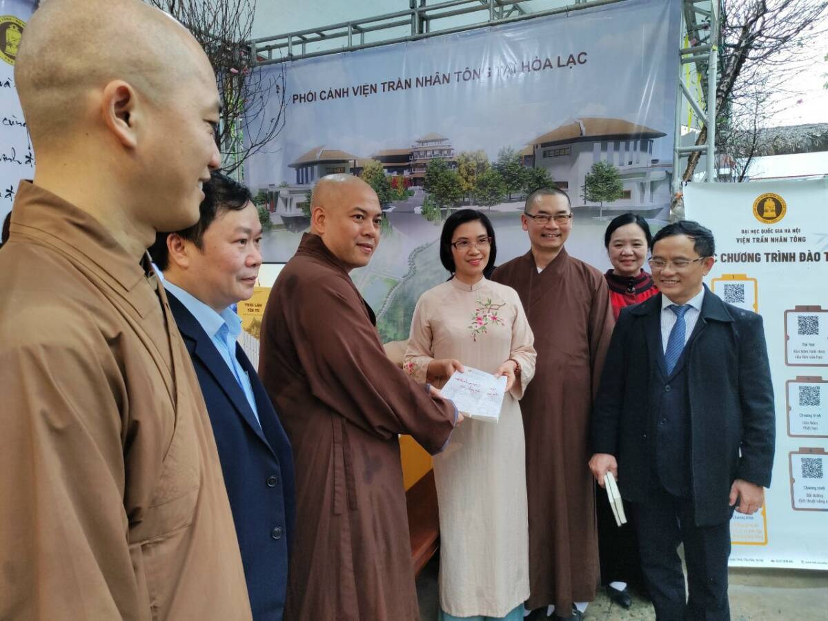 Và đặc biệt vô cùng hân hoan đón tiếp các chư thiện hữu tri thức: GS Hà Tôn Vinh, Tư vấn Cao cấp vùng Châu Á; Ông Nguyễn Tiến Vinh – Viện trưởng Viện Trần Nhân Tông; Ông Lương Xuân Đoàn – Chủ tịch hội Mỹ thuật Việt Nam; Giáo sư, Viện sĩ, Họa sĩ Ngô Xuân Bính; GS.TS , Nguyên Vụ trưởng Vụ thư viện – Bộ VHTTDL Vũ Dương Thúy Ngà – người thiết lập trang, kênh , tác giả ” Cùng Bạn Đọc Sách”; GS Hà Tôn Vinh… cùng các vị giảng viên, nhân viên viện nghiên cứu biên dịch tư liệu, Giáo sư Tiến sĩ, nhà nghiên cứu Phật học, họa sĩ, Phật tử, các bậc thiện hữu học giả, nhà nghiên cứu tri thức, chư nam nữ Phật tử xa gần đồng về tham dự đông đảo buổi khai mạc triển lãm.