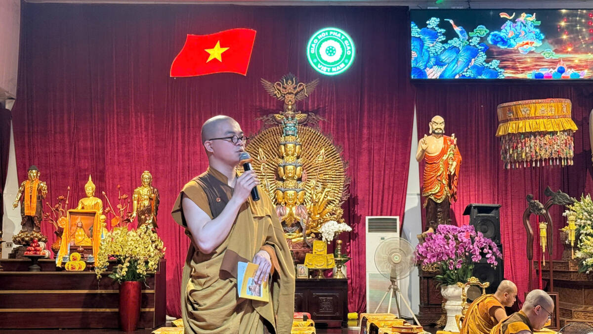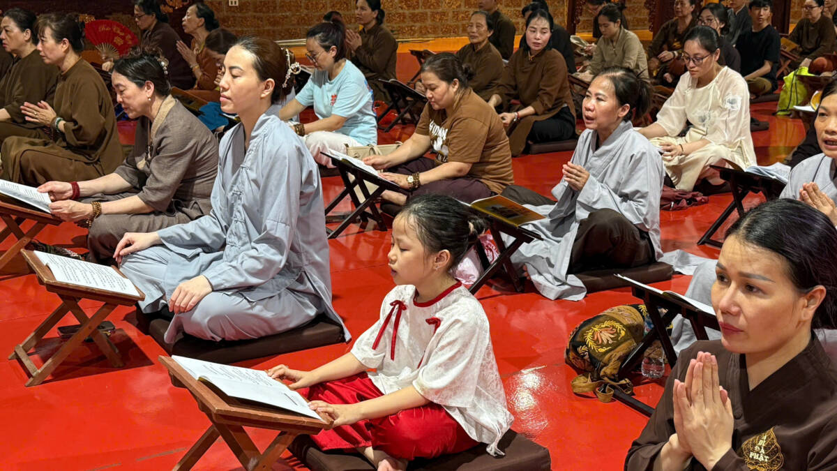 PGĐS – Giữa không gian thanh tịnh của tiết trời tháng Hai âm lịch, tối ngày 19/02 năm Bính Ngọ (tức 06/04/2026), tại Luật Mật Viện Thắng Nghiêm – chùa Khúc Thủy (Hà Nội) đã trang nghiêm diễn ra lễ Ngũ Bách Danh kỷ niệm ngày khánh đản Đức Bồ Tát Quán Thế Âm. Trong làn trầm hương quyện tỏa, hàng trăm trái tim cùng chung nhịp đập, hướng về hình bóng người Mẹ Hiền của nhân loại để dâng lên lòng tôn kính và những lời nguyện cầu hòa bình cho muôn phương.