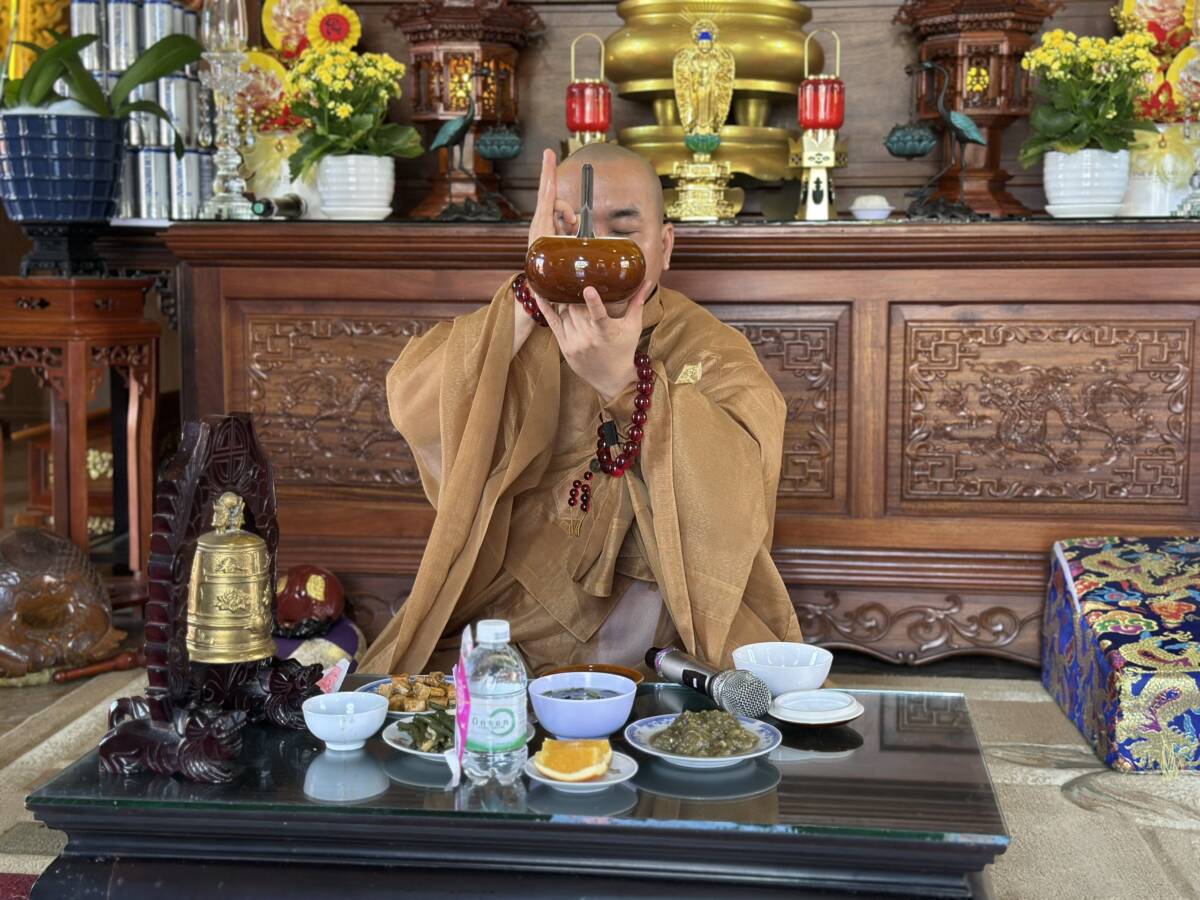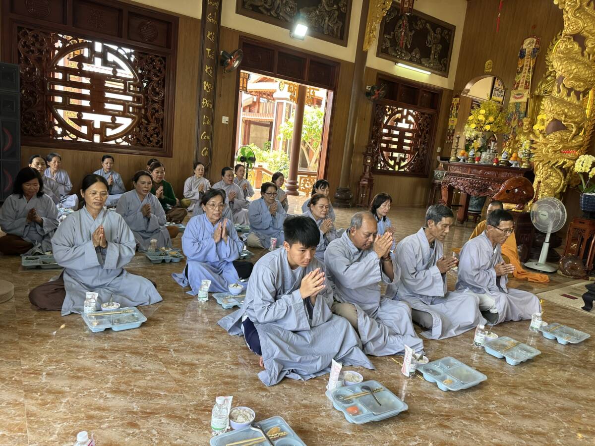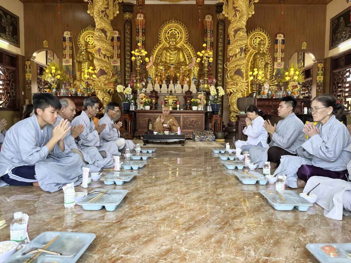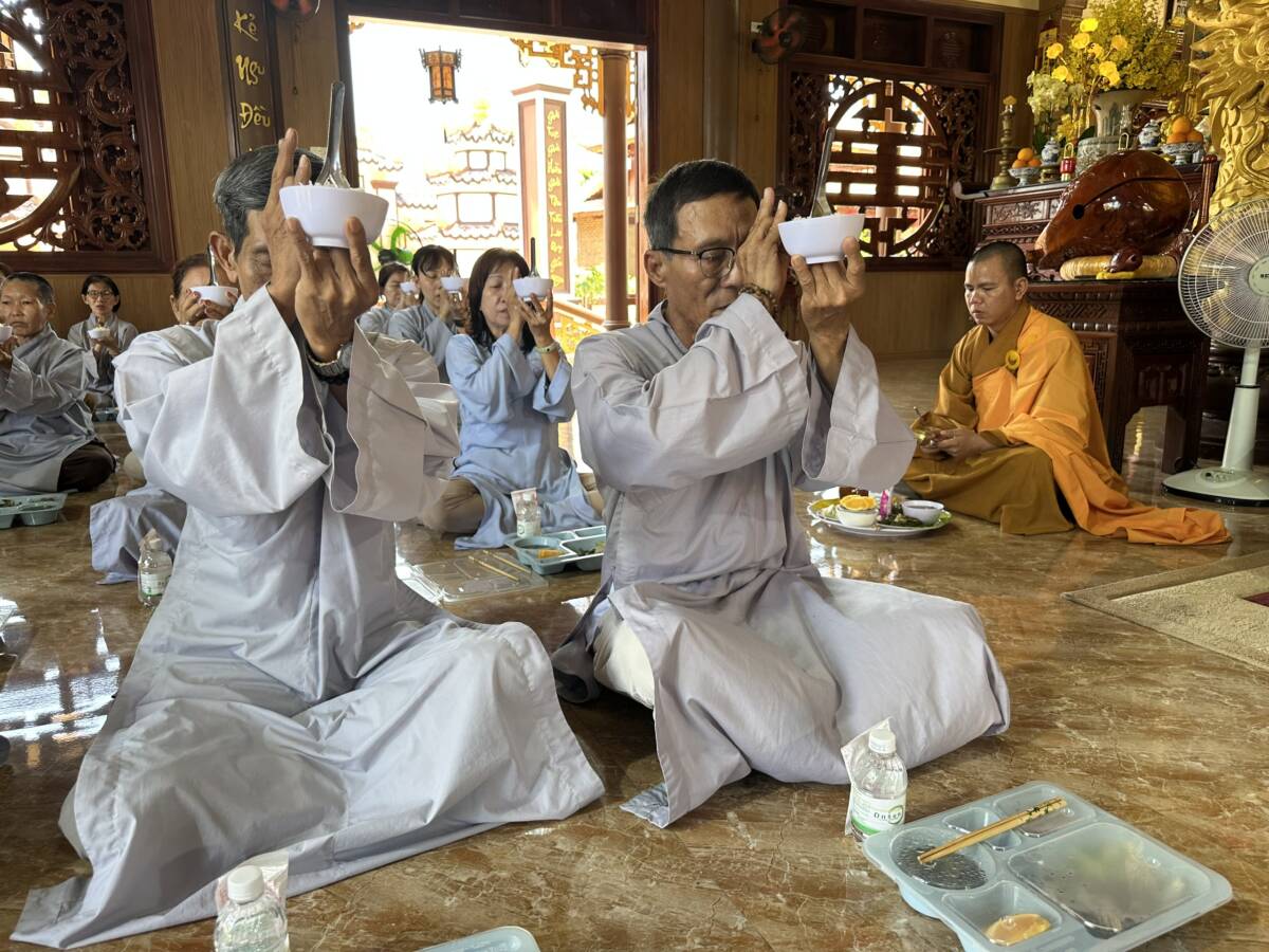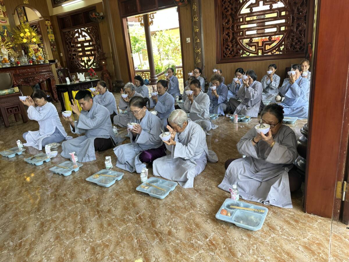 Sau khoá lễ trì tụng kinh Di Đà và kinh hành niệm Phật, đại chúng thọ trai trong chánh niệm