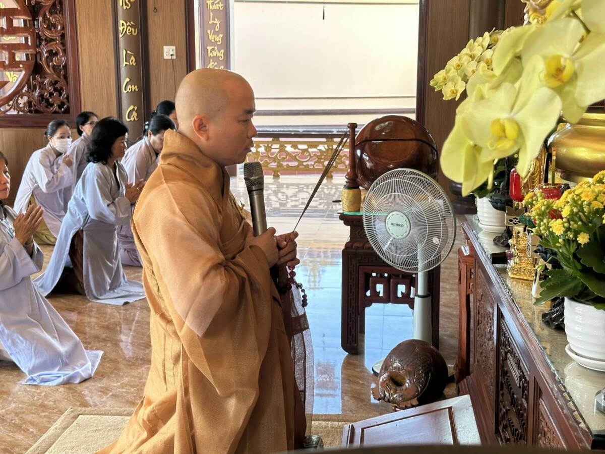 Sau khi đảnh lễ Tam bảo, Đại đức trụ trì Thích Nhuận Trực đã truyền trao giới pháp cho các hành giả về tham dự khoá tu.