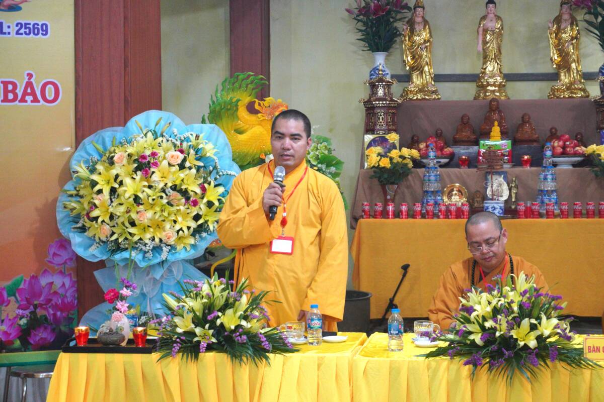 Ni Sinh Thích Tuệ Nhật, đại diện Ban tổ chức, báo cáo kế hoạch tu học cụ thể: bao gồm thiền hành, tụng kinh, tọa thiền, giảng pháp, pháp đàm, thảo luận nhóm, thực hành tổ chức khóa tu và chia sẻ kinh nghiệm thực tiễn trong hành trình giảng sư.