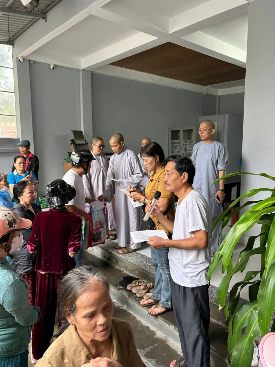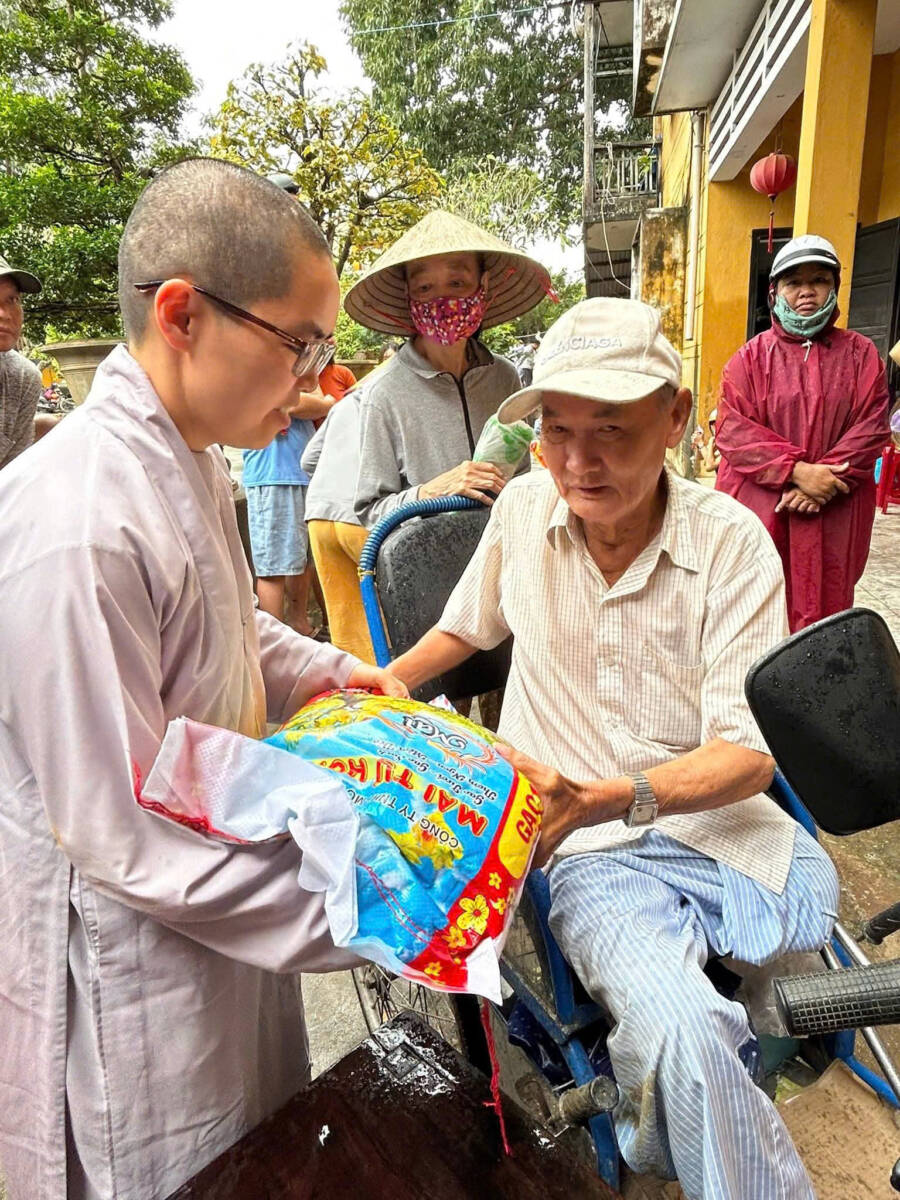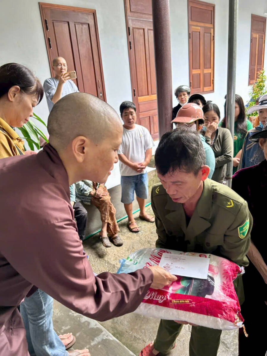 Đến chùa Viên Giác – phường Hội An, đoàn được Thượng tọa Thích Như Tịnh, trụ trì chùa, hướng dẫn trao 300 phần quà An Vui gồm gạo và tiền mặt gửi gắm tình yêu thương của người Lâm Đồng đến với bà con nơi đây thêm động lực vượt qua khó khăn sau mưa lũ.