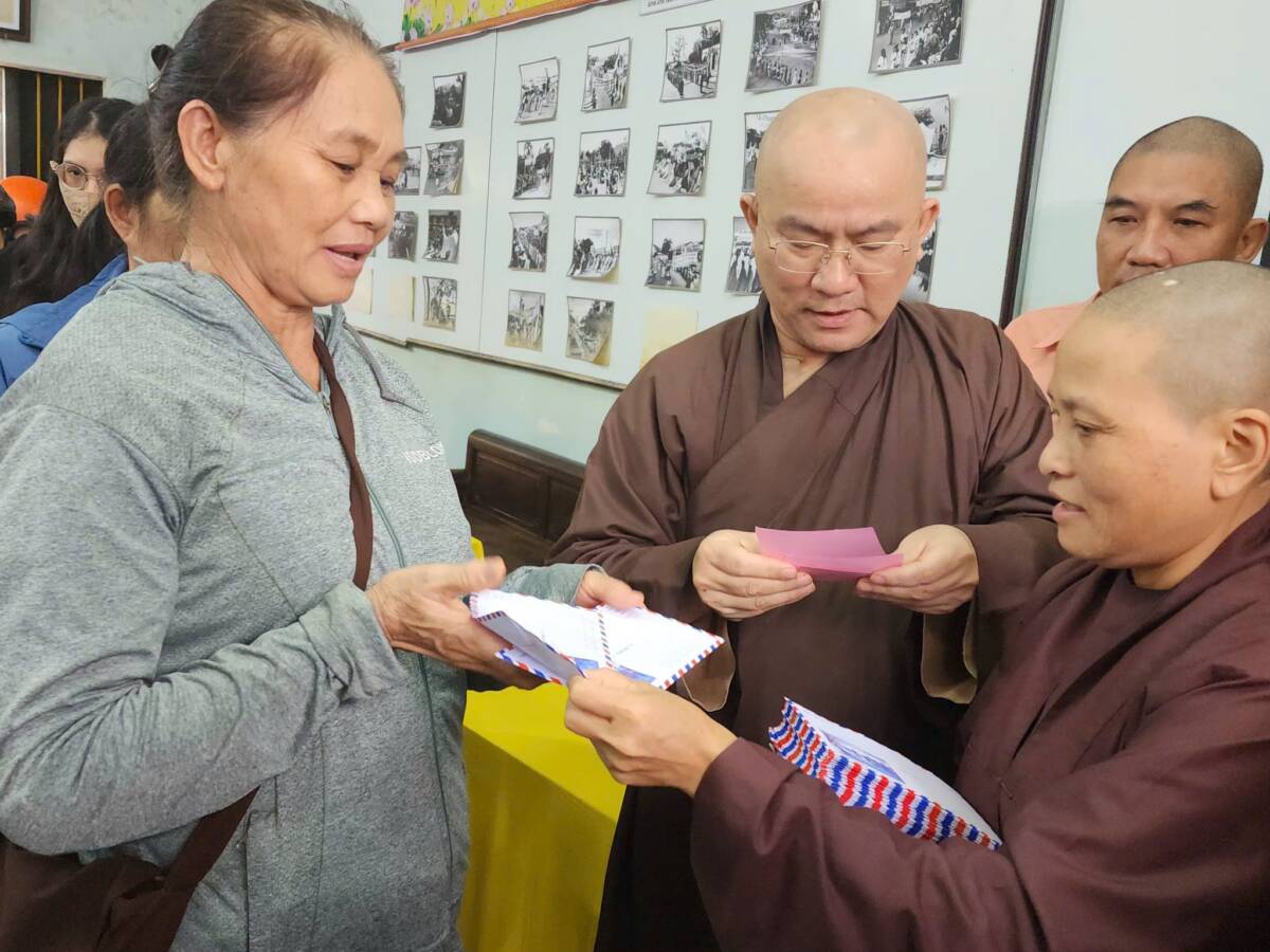 Đến chùa Viên Giác – phường Hội An, đoàn được Thượng tọa Thích Như Tịnh, trụ trì chùa, hướng dẫn trao 300 phần quà An Vui gồm gạo và tiền mặt gửi gắm tình yêu thương của người Lâm Đồng đến với bà con nơi đây thêm động lực vượt qua khó khăn sau mưa lũ.