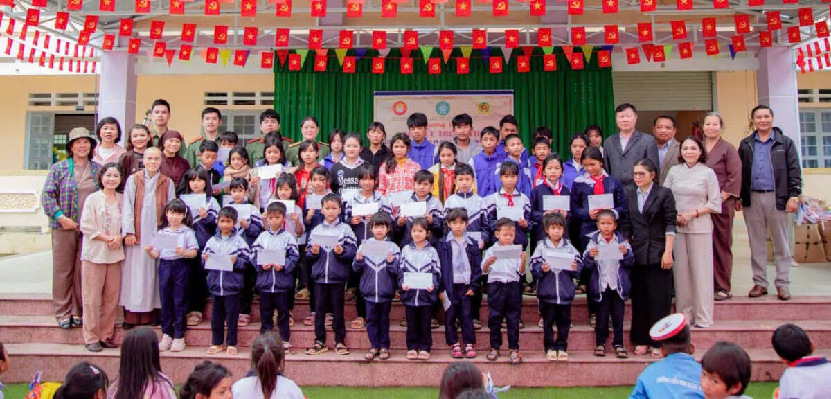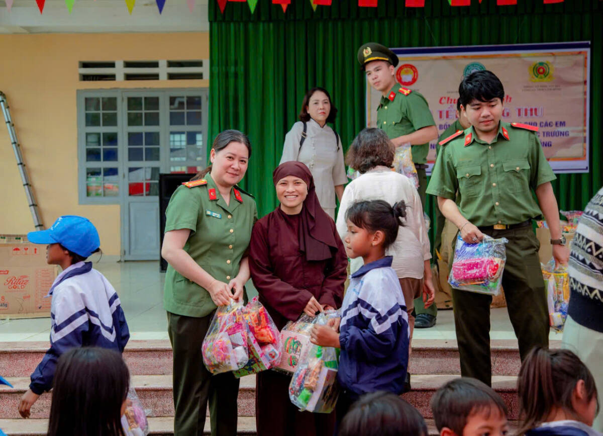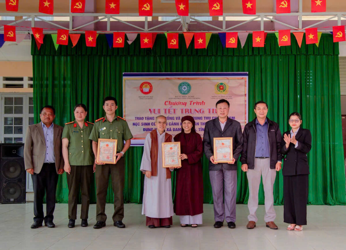 PGĐS- Hôm nay, ngày 30/9/2025 (9 tháng Tám Ất Tỵ) tại trường Mầm non Đưng K’Nớ, xã Đam Rông 4, tỉnh Lâm Đồng, Ban Từ thiện Xã hội Phật giáo tỉnh phối hợp cùng Phòng An ninh Nội địa công an tỉnh (PA 02) và Hội Khuyến học tỉnh tổ chức chương trình Vui Tết Trung thu, bằng hoạt động tặng 40 học bổng và 700 phần quà cho các học sinh đang theo học tại ba trường Mầm non, Tiểu học và Trung học Đưng K’Nớ, với tổng kinh phí 90 triệu đồng.