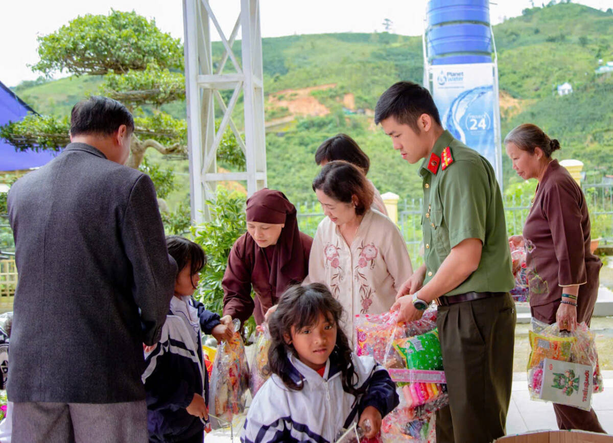 Đại diện chánh quyền, cảm ơn tấm lòng từ bi của Ban TTXH Phật giáo, cảm ơn Phòng PA 02 công an tỉnh, Hội Khuyến học đã luôn quan tâm hỗ trợ địa phương trong công tác chăm lo cho thế hệ tương lai của xã nhà.