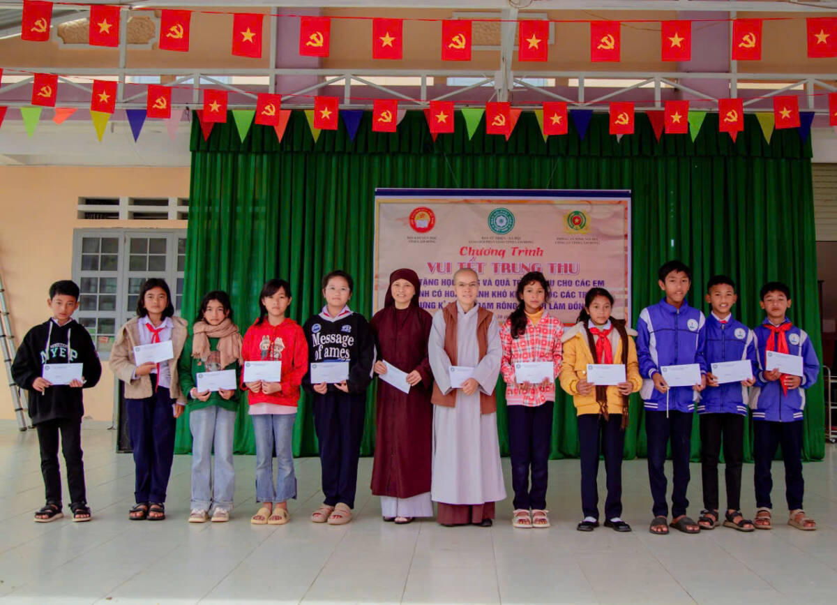 Lâm Đồng: Ban Từ thiện Xã hội Phật giáo tặng học bổng và quà Trung thu cho 700 học sinh xã Đam Rông 4