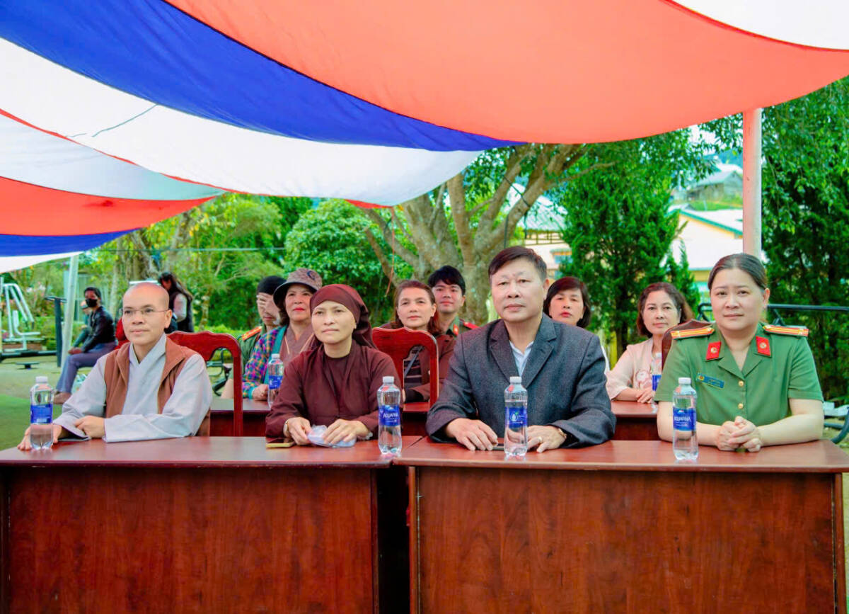 Tham dự chương trình có Ni sư Thích Nữ Hạnh Khai, Uỷ viên thường trực Ban Trị sự Phật giáo tỉnh, Phó Thường trực Ban TTXH PG tỉnh; chư Tôn đức Ni và quý Phật tử thành viên Ban TTXH Phật giáo; Đại úy Hứa Đàm Long, Bí thư Chi đoàn phòng PA02, Đội Phó đội Tôn giáo; các thành viên Chi đoàn PA02; ông Đỗ Hoàng Tuấn, Phó Chủ tịch Hội Khuyến học; đại diện chánh quyền xã Đam Rông 4; Ban Giám hiệu, quý thầy cô và các em học sinh.