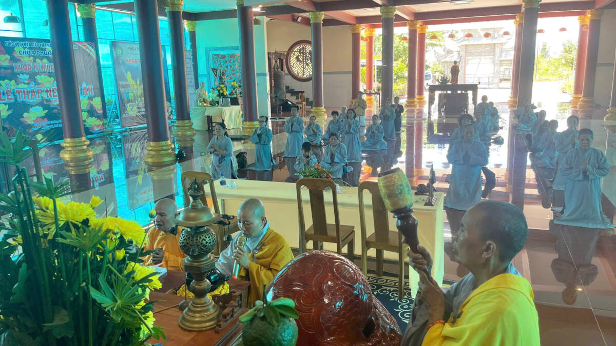 Buổi sáng, tại chánh điện Sư cô Thích Nữ Phước Minh đã niêm hương bạch Phật chứng minh gia hộ cho Pháp sự được châu viên.