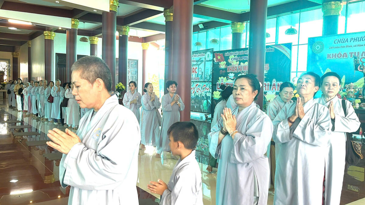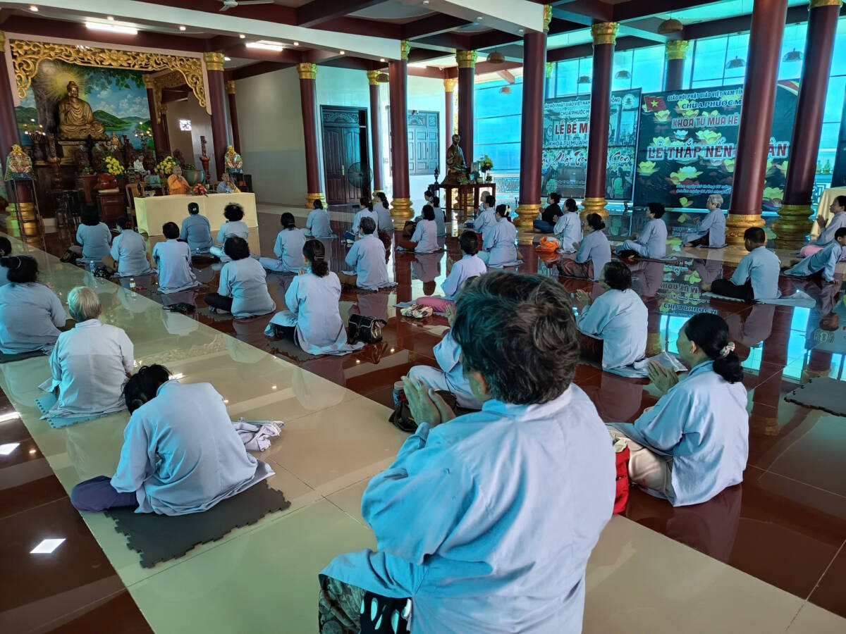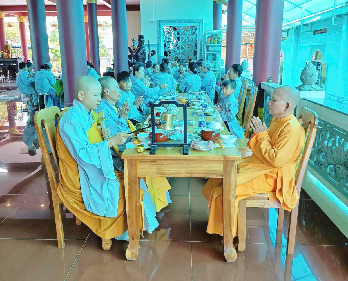 Sau thời pháp thoại, đại chúng cùng niệm Phật, cúng Ngọ và thực hiện nghi thức quá đường. Đầu giờ chiều, đại chúng tọa thiền, kinh hành niệm Phật và tham dự pháp đàm, vấn đáp về Phật pháp trong đời sồng.