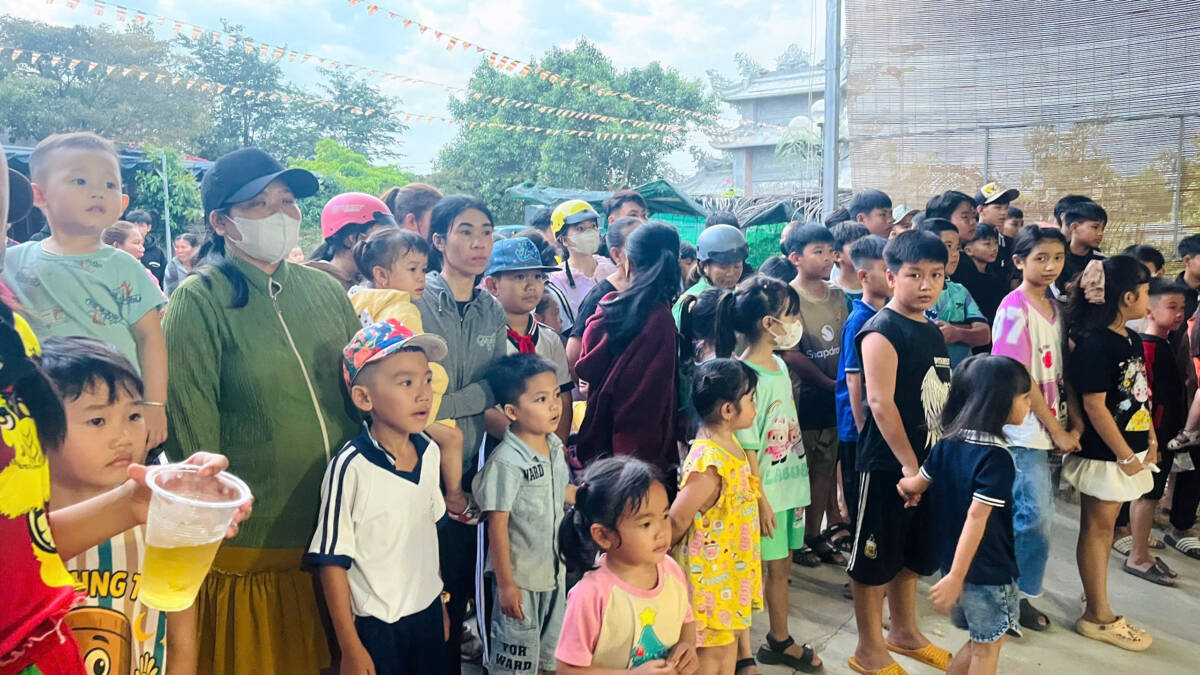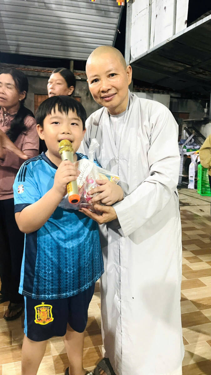 Niềm vui lan tỏa trong đêm hội khi Sư cô Thích Nữ Nguyên Minh thăm hỏi sức khỏe và chúc các bạn nhỏ chăm ngoan học giỏi, đón Tết đoàn viên thật nhiều hạnh phúc bên gia đình và bạn bè.