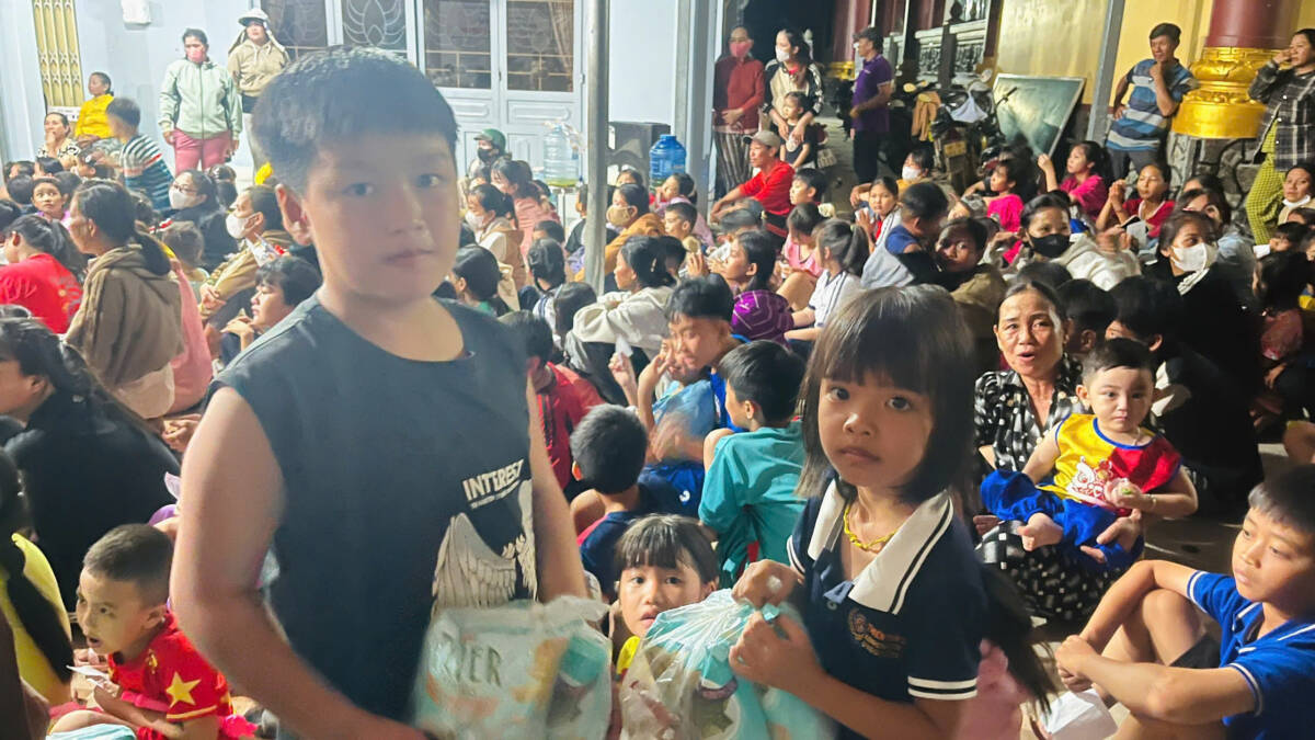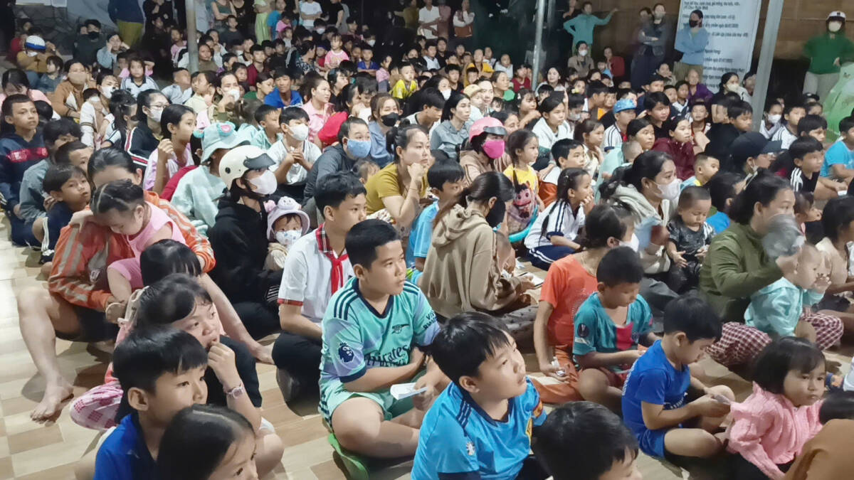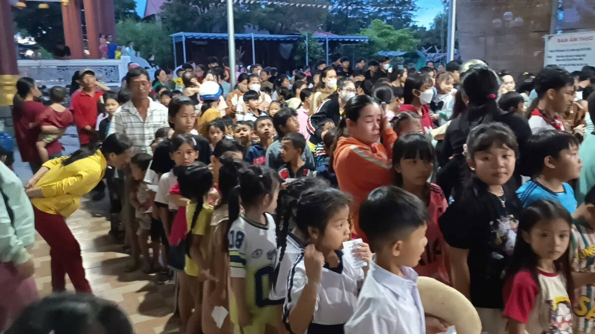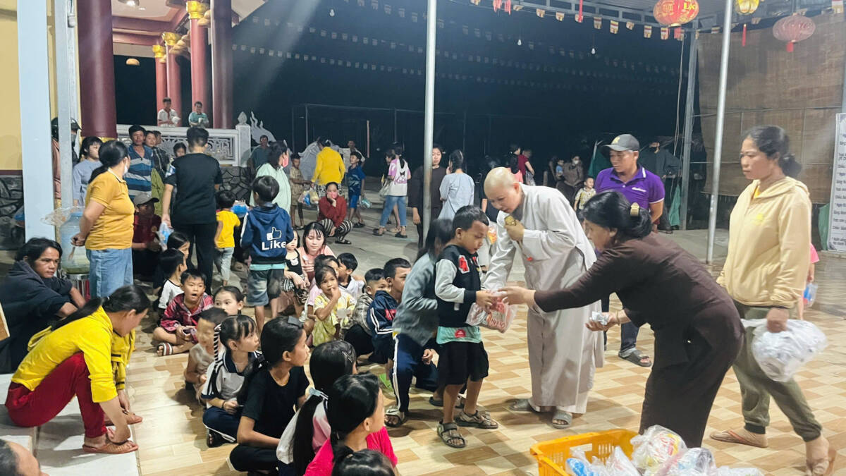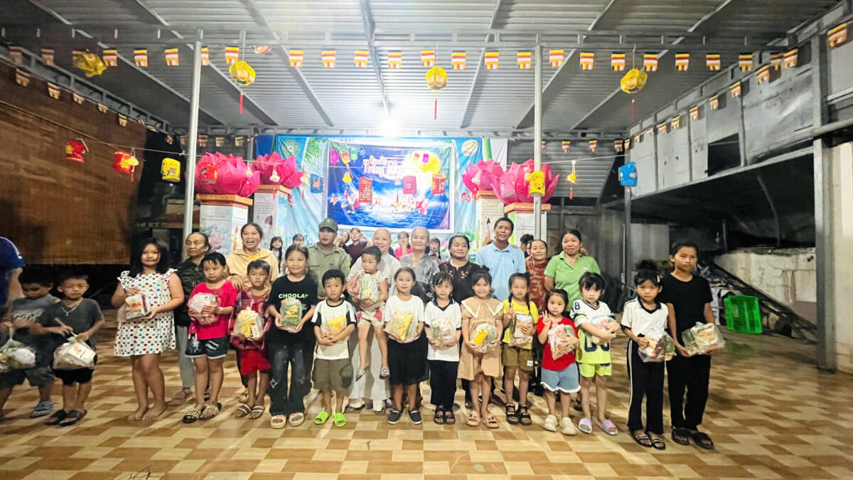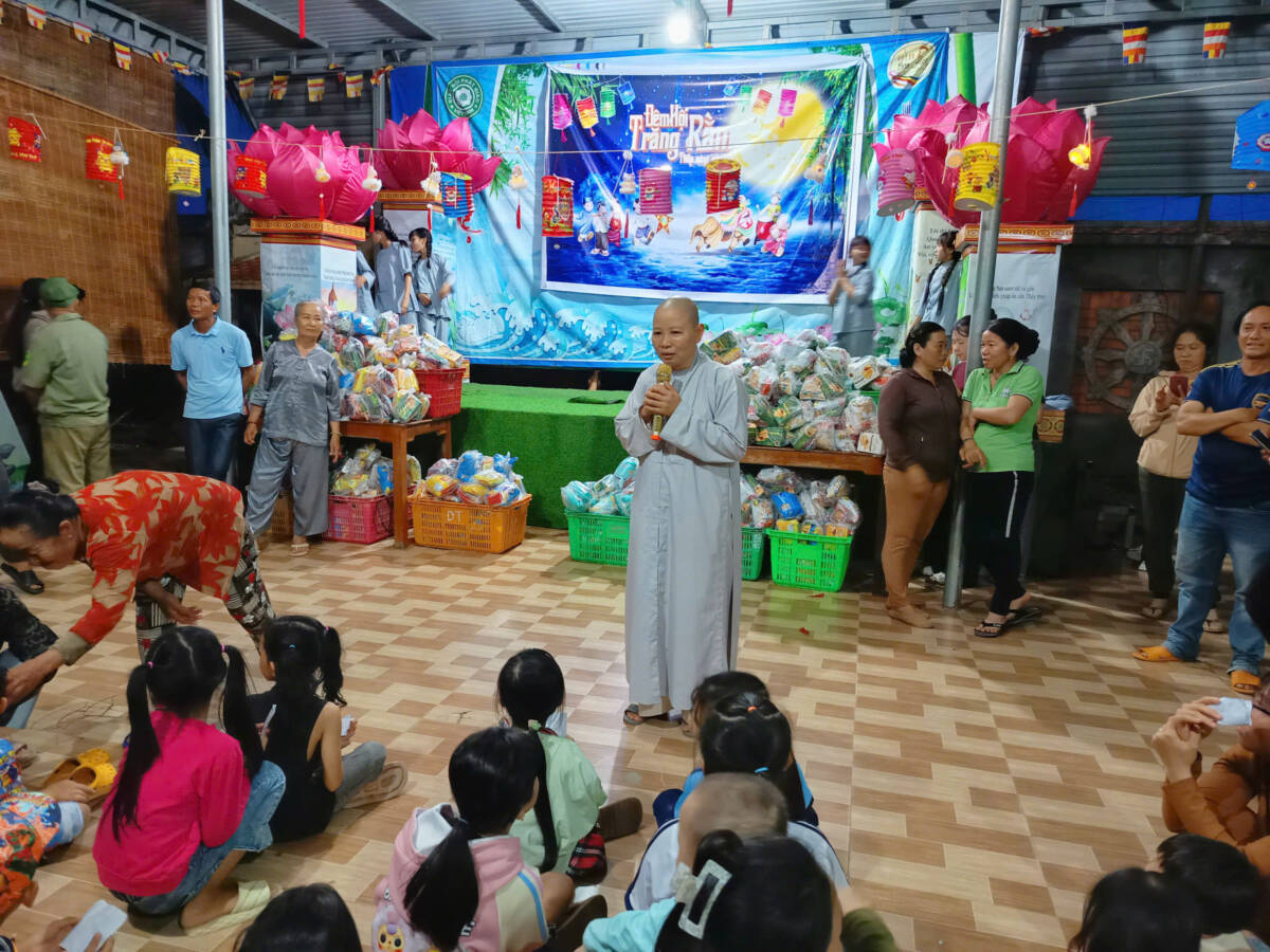 Đầu giờ tối, 500 bạn nhỏ trong xã Hàm Kiệm và các vùng phụ cận cùng hân hoan trở về chùa tham dự Đêm Hội Trăng Rằm: coi múa lân, xem văn nghệ và đón nhận những phần quà Tết Trung thu.