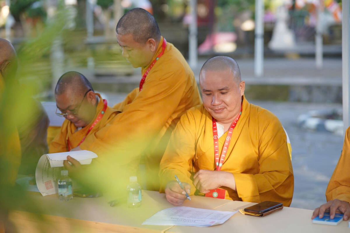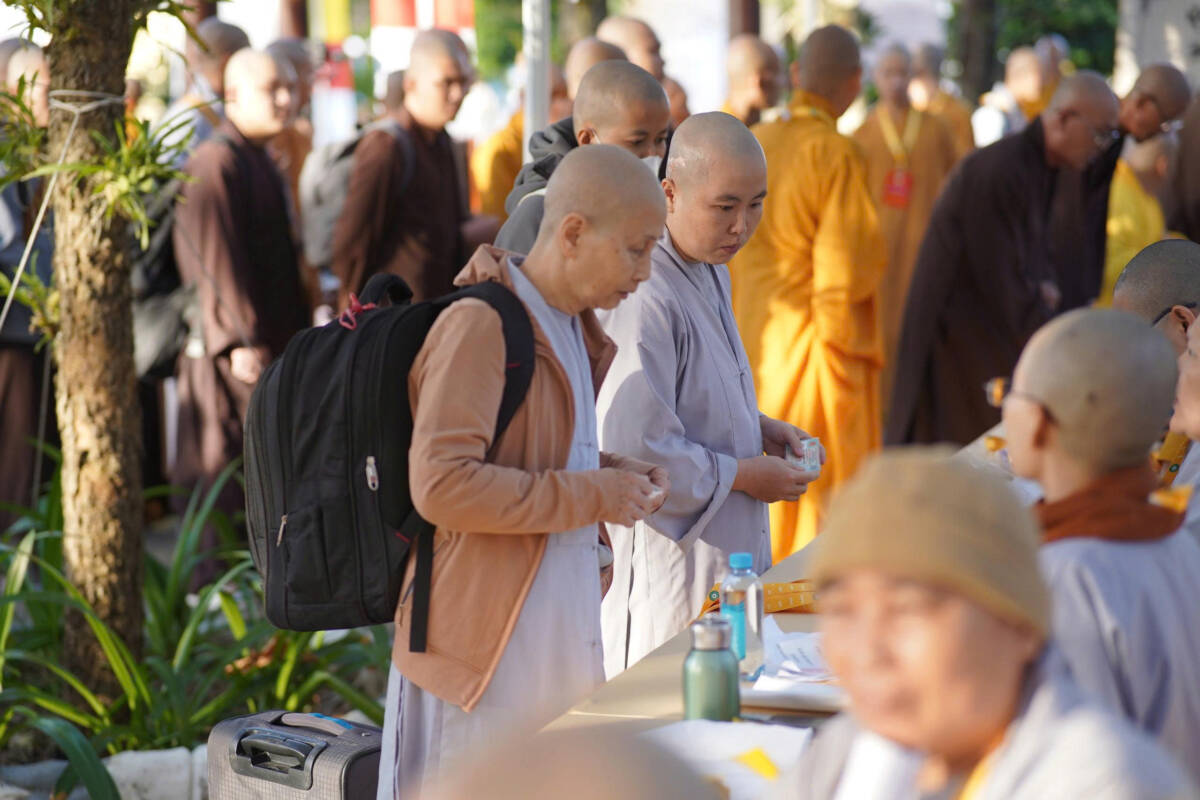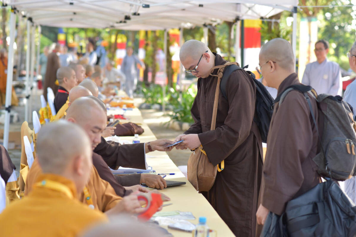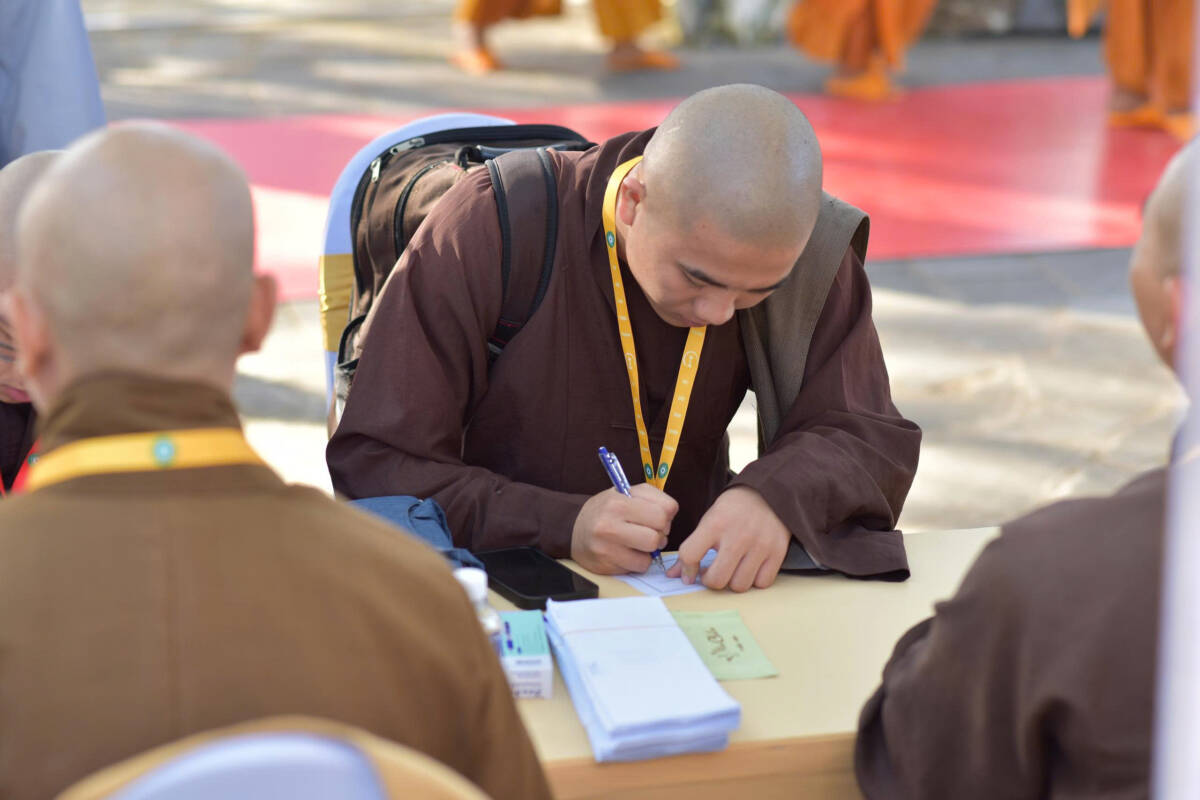 “Từ chiều hôm qua, đến 9h00 sáng hôm nay 17/12, Ban Quản giới tử đã tiếp nhận 1.275, chỉ còn 7 giới tử do đường xa chưa kịp đến. Các giới tử đã được nhận phù hiệu, báo danhvà bố trí nơi nghỉ ngơi, sinh hoạt trong suốt 4 ngày diễn ra Giới đàn.” ĐĐ. Thích Nguyên Quả, Ban Quản Giới tử cho biết.