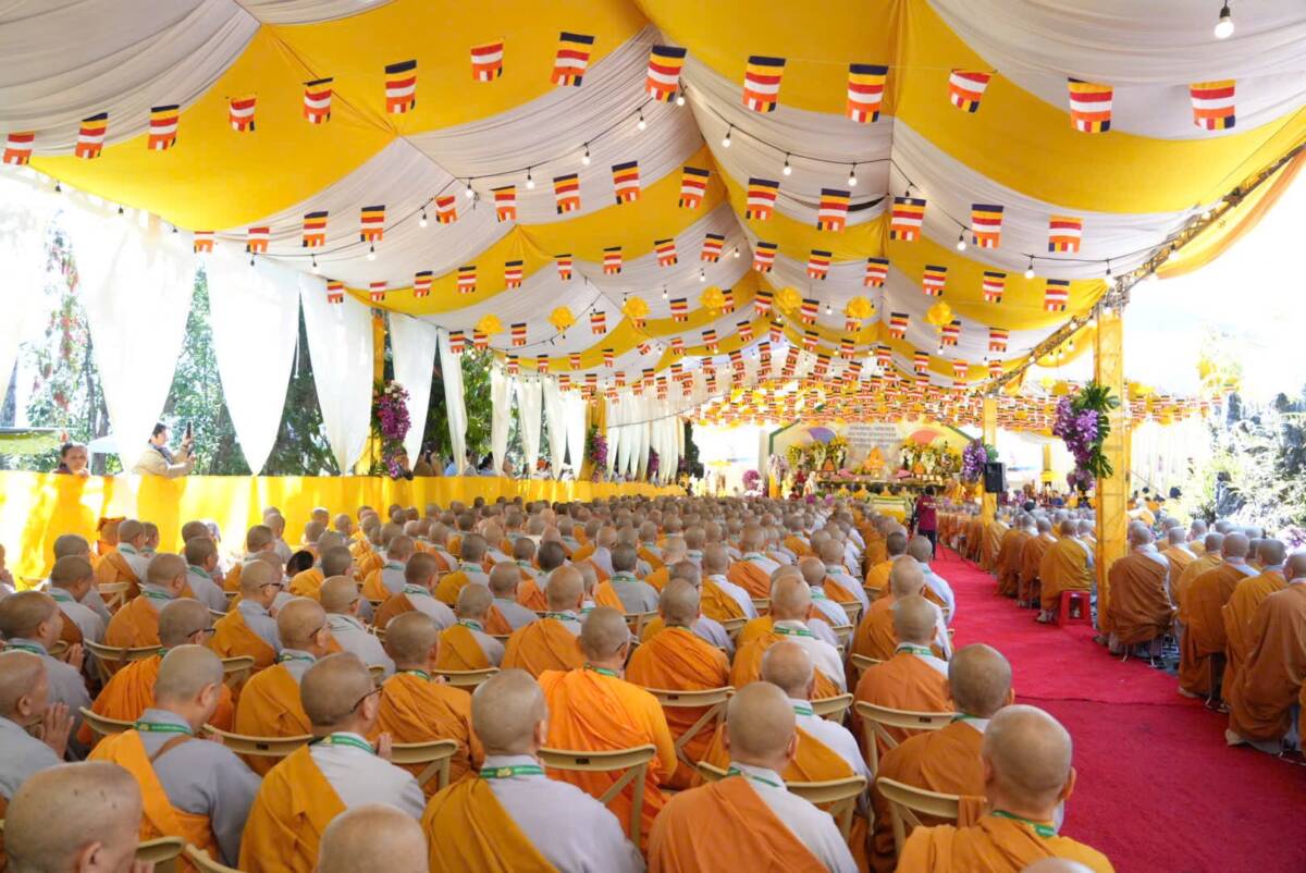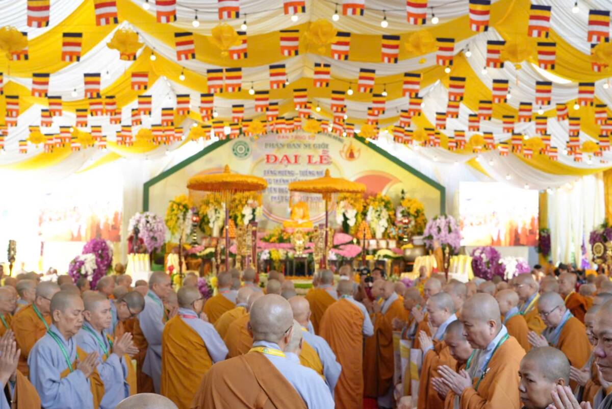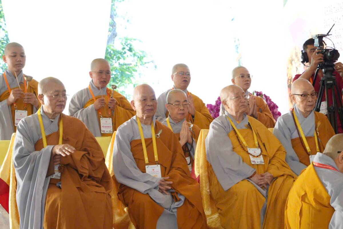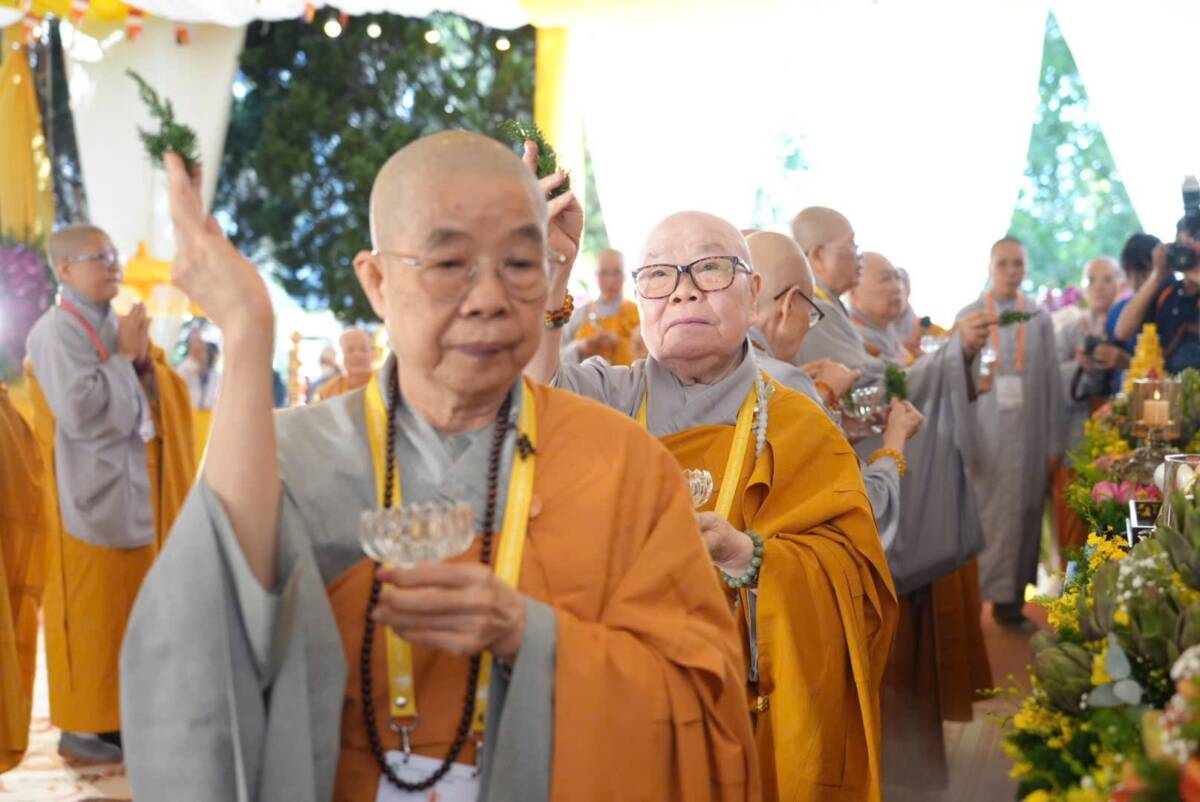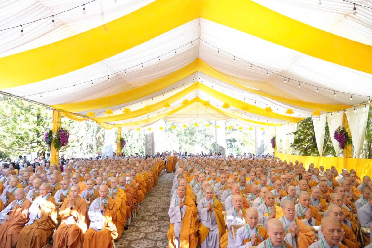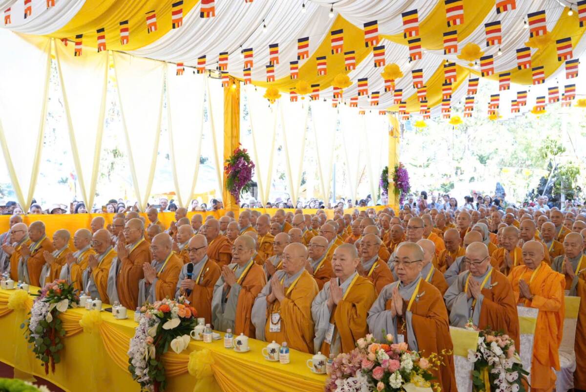 Giữa không gian trang nghiêm của đạo tràng, đại chúng đồng niệm danh hiệu Bổn Sư, cầu gia bị của mười phương chư Phật. Tiếng niệm Phật ngân dài trong sự nhất tâm thanh tịnh, như nhắc nhở mỗi hành giả trở về trong chánh niệm tỉnh thức, nhiếp tâm an trú trong pháp vị thanh lương.