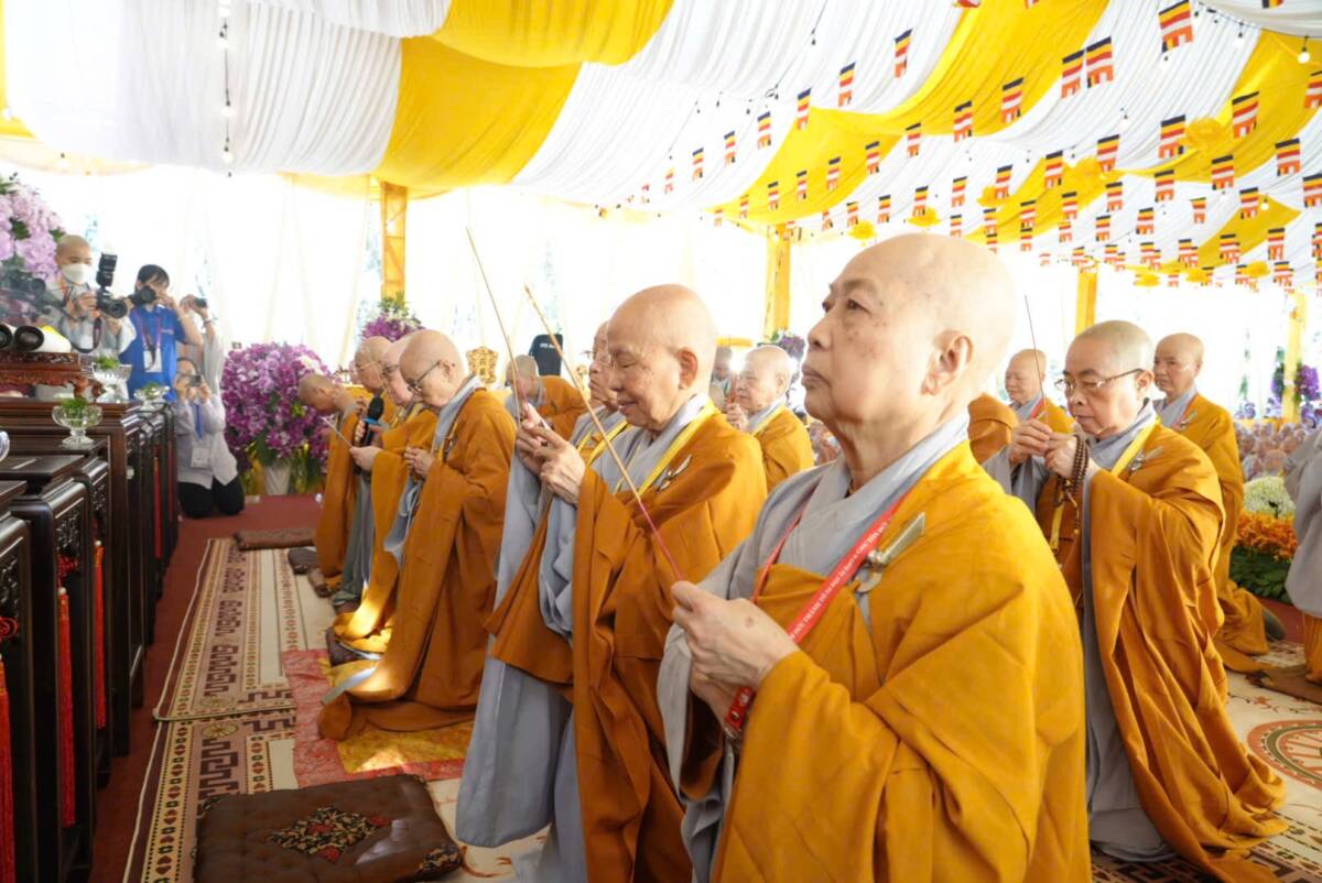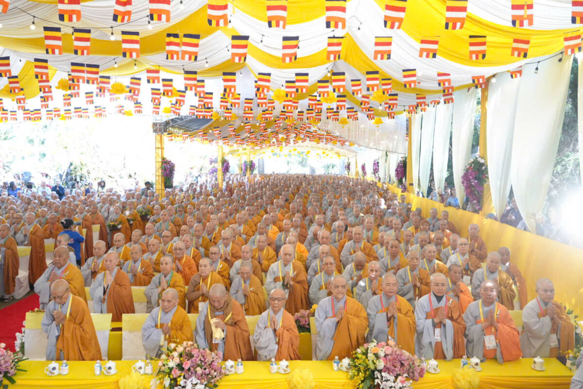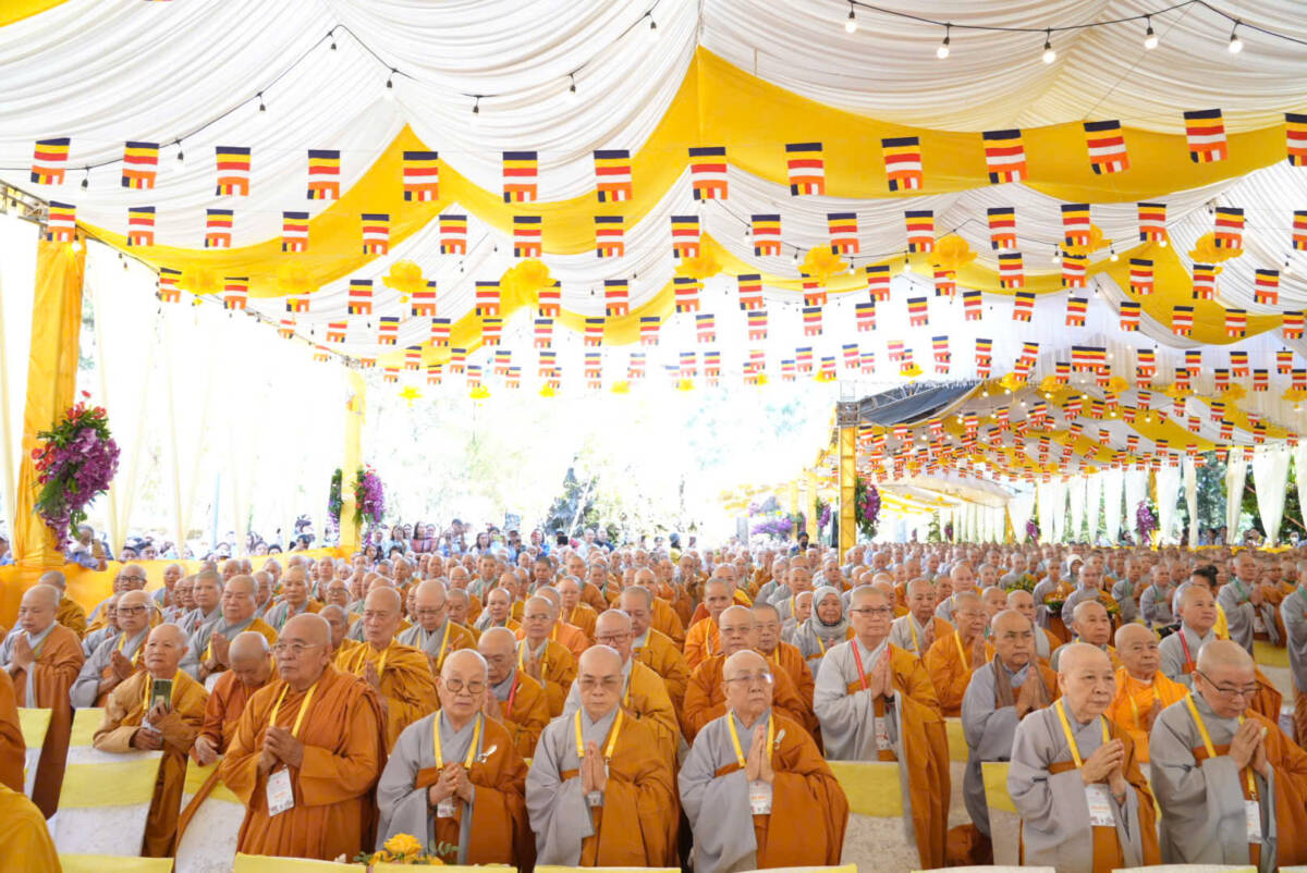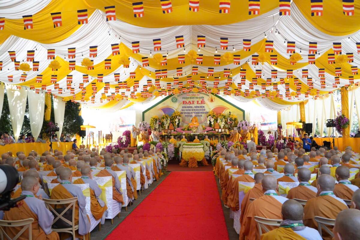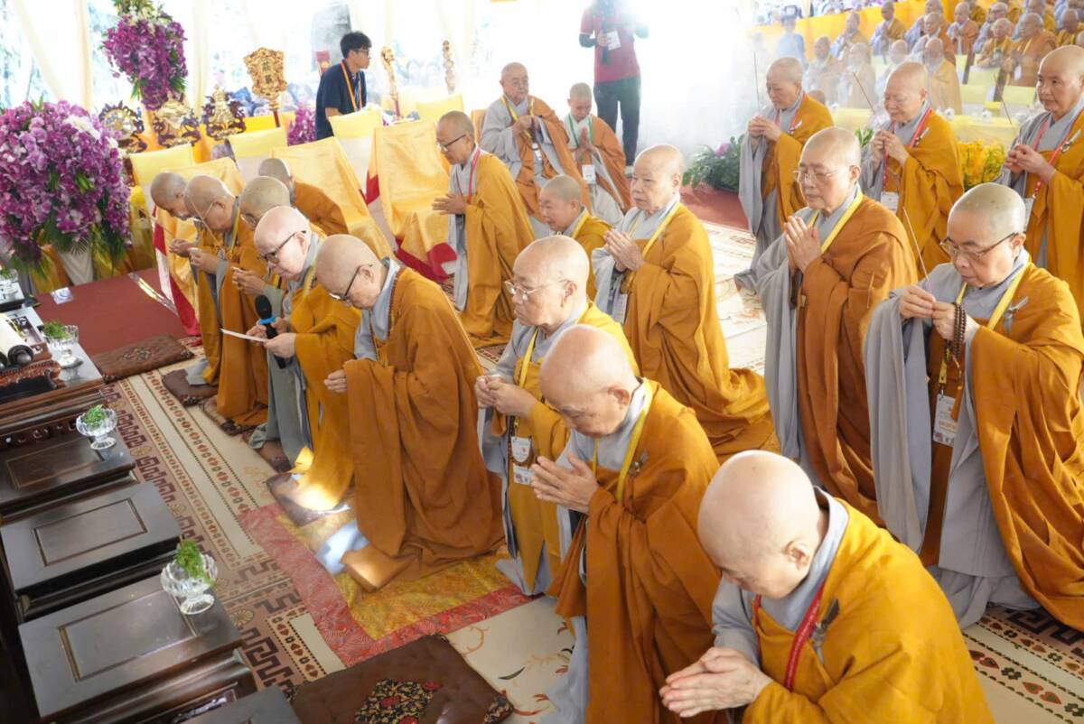 Giữa không gian trang nghiêm của đạo tràng, đại chúng đồng niệm danh hiệu Bổn Sư, cầu gia bị của mười phương chư Phật. Tiếng niệm Phật ngân dài trong sự nhất tâm thanh tịnh, như nhắc nhở mỗi hành giả trở về trong chánh niệm tỉnh thức, nhiếp tâm an trú trong pháp vị thanh lương.