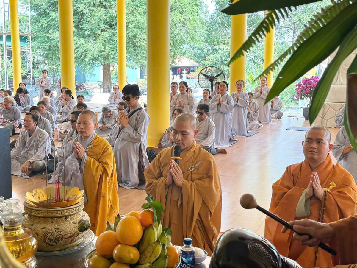 Tại khóa tu, chư Tôn đức đã niêm hương bạch Phật, chứng minh gia hộ Phật sự được viên thành, hồi hướng công đức phong điều vũ thuận, quốc thái dân an, thiên hạ thái bình, chư tai tiêu diệt.
