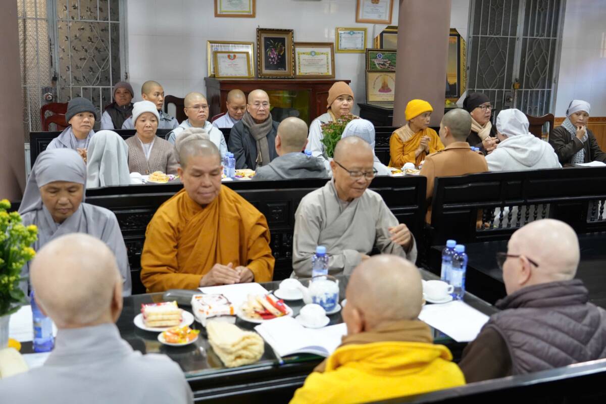 Tham dự phiên họp có quý Ni trưởng Chứng minh, Cố vấn Phân ban Ni giới tỉnh; Ni trưởng Thích Nữ Như Phú – Trưởng Phân ban Ni giới GHPGVN tỉnh Lâm Đồng; cùng chư Tôn đức Ni thành viên Ban Thường trực và chư Tôn đức Trưởng, Phó các Tiểu ban phục vụ Đại lễ.