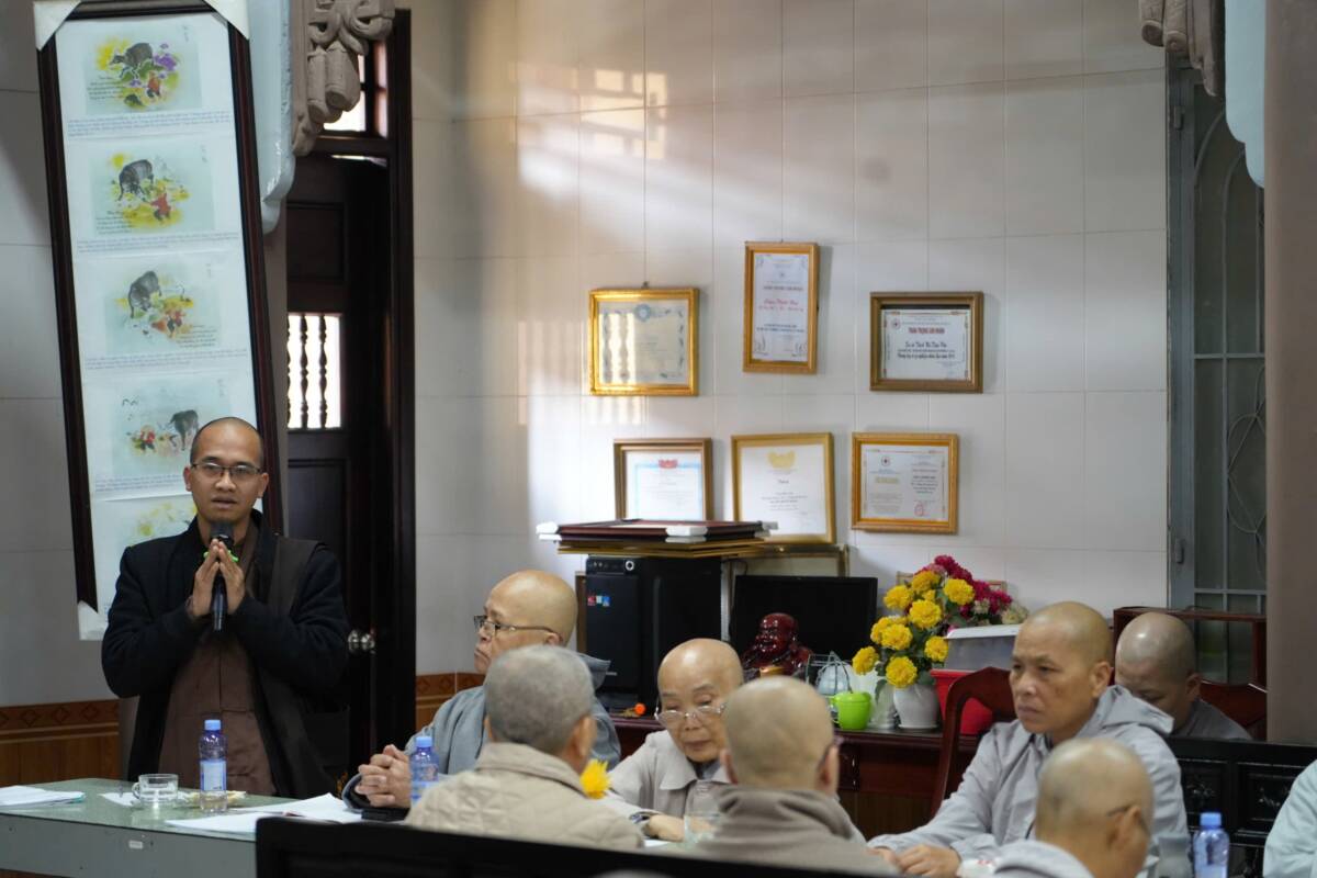 Thay mặt Phân ban, Ni sư Thích Nữ Hạnh Nhẫn – Chánh Thư ký Phân ban Ni giới tỉnh đã trình bày tổng thể chương trình Đại lễ, đồng thời mời đại diện các Tiểu ban lần lượt báo cáo tiến độ thực hiện.