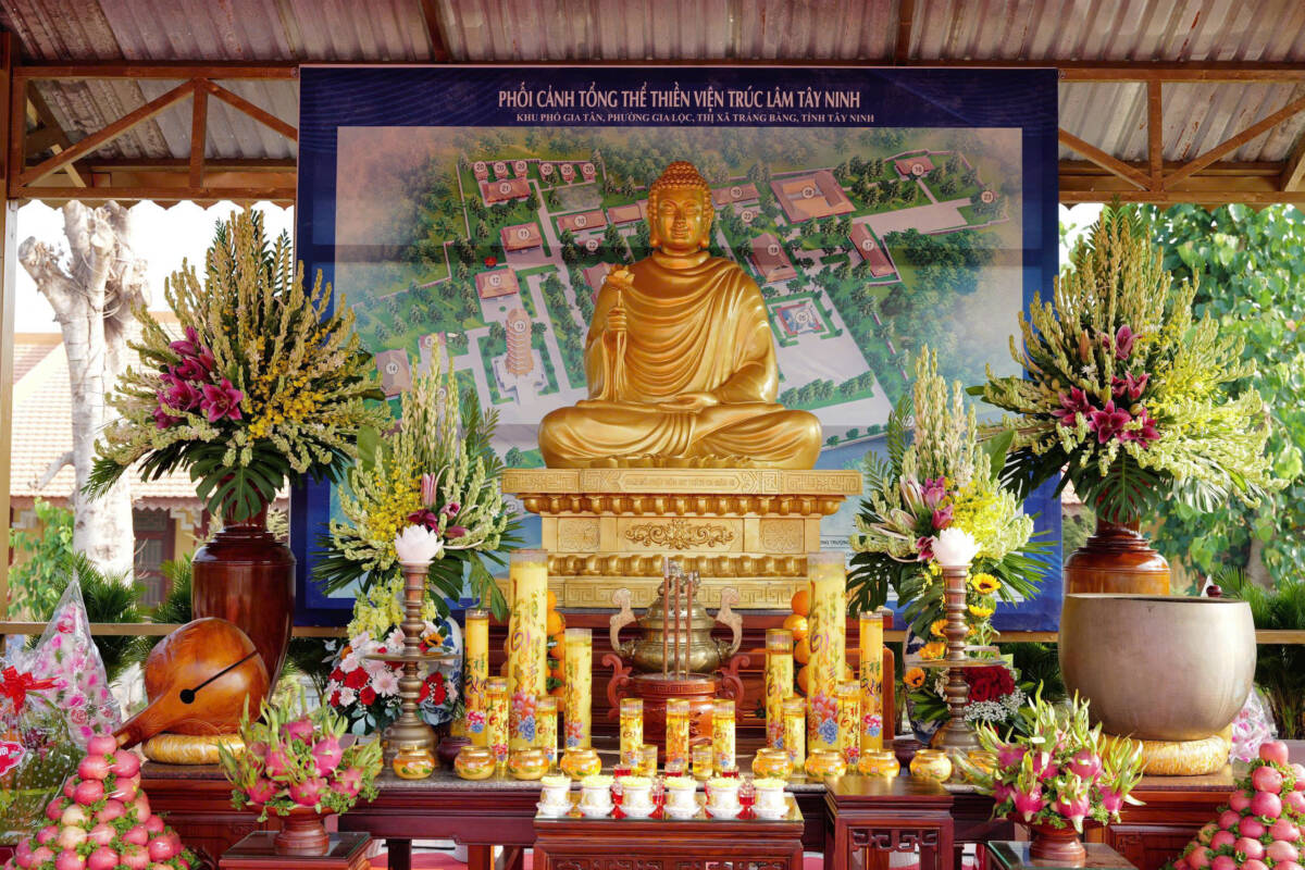 PGĐS – Sáng ngày 22/4/2026 (nhằm ngày 6/3AL năm Bính Ngọ), chư Tôn đức Ban Quản trị Thiền phái Trúc Lâm hiệp cùng hàng môn hạ đệ tử trong Tông môn đã trang nghiêm tác lễ Cầu nguyện dựng ngôi Đại hùng bảo điện và Tổ đường tại Thiền viện Trúc Lâm Tây Ninh, thôn Gia Lộc, xã Trảng Bàng, tỉnh Tây Ninh.