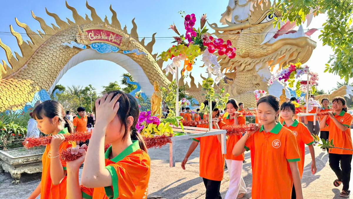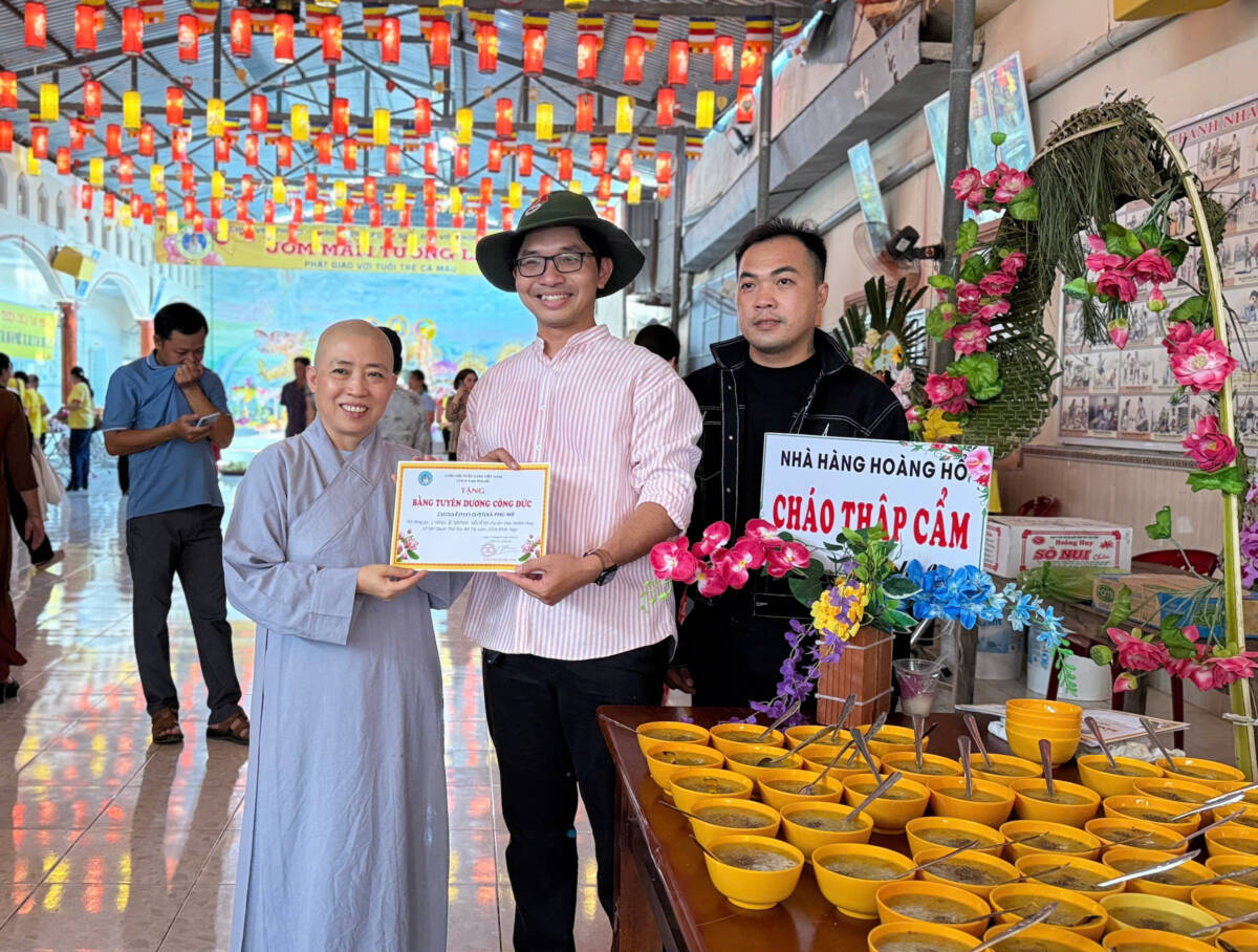 Sau lễ, đại chúng cùng tham dự buffet chay thân tình với hơn 20 món ăn do các nhóm thiện nguyện chung tay chuẩn bị. Đó không chỉ là sự nuôi dưỡng thân thể, mà còn là sự nuôi dưỡng tình người, tình đạo trong sự hòa hợp và sẻ chia.