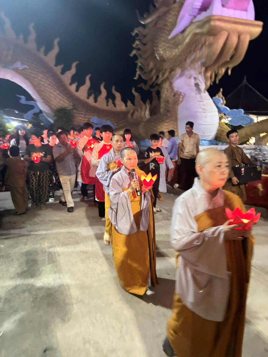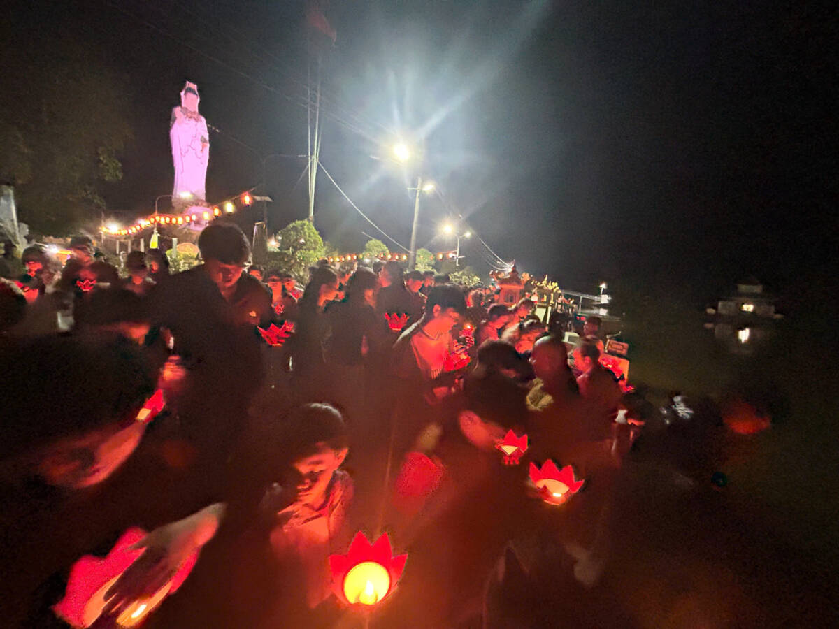 Đêm xuống, không gian trở nên tĩnh lặng và nhiệm màu trong ánh sáng của hàng trăm hoa đăng. Đại chúng cùng trì tụng kinh chú, xưng niệm danh hiệu Bồ tát, rồi nhẹ nhàng thả những ngọn đèn xuống dòng nước. Mỗi ánh đèn là một lời nguyện lành, một niềm tin gửi gắm – nguyện cho tất cả chúng sinh đều được soi sáng, vượt qua mê lầm, trở về bến bờ an lạc.