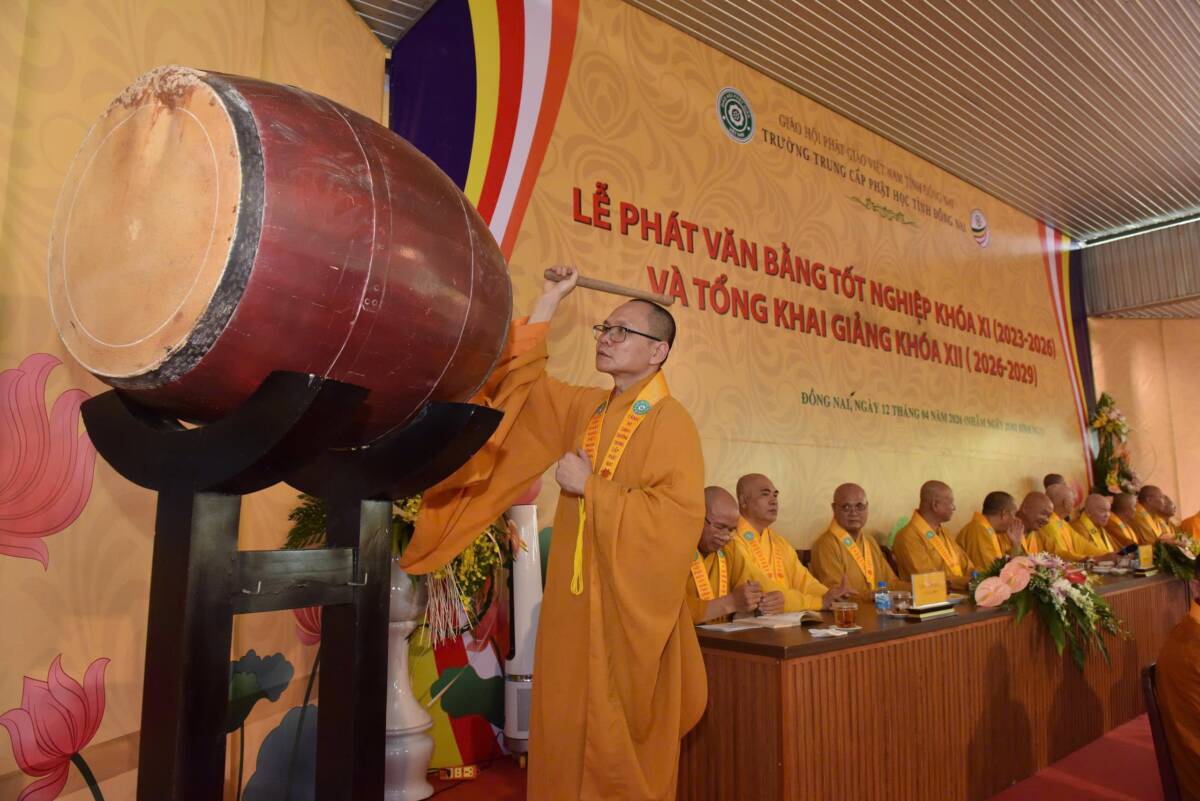PGĐS – Nhằm kết thúc khóa XI niên khóa XI (2023 – 2026) và Khai giảng niên khóa XII (2026 – 2029), sáng ngày 12/4/2026 (25/02AL năm Bính Ngọ), Ban Giám hiệu của Trường Trung cấp Phật học tỉnh Đồng Nai long trọng tổ chức Lễ Tổng kết Phát văn bằng Tốt nghiệp khóa XI (2023 – 2026) và Tổng Khai giảng khóa XII (2026 – 2029).
