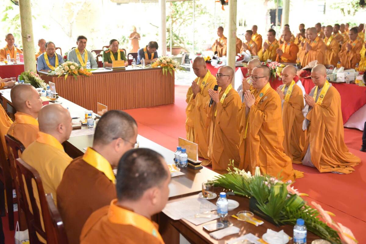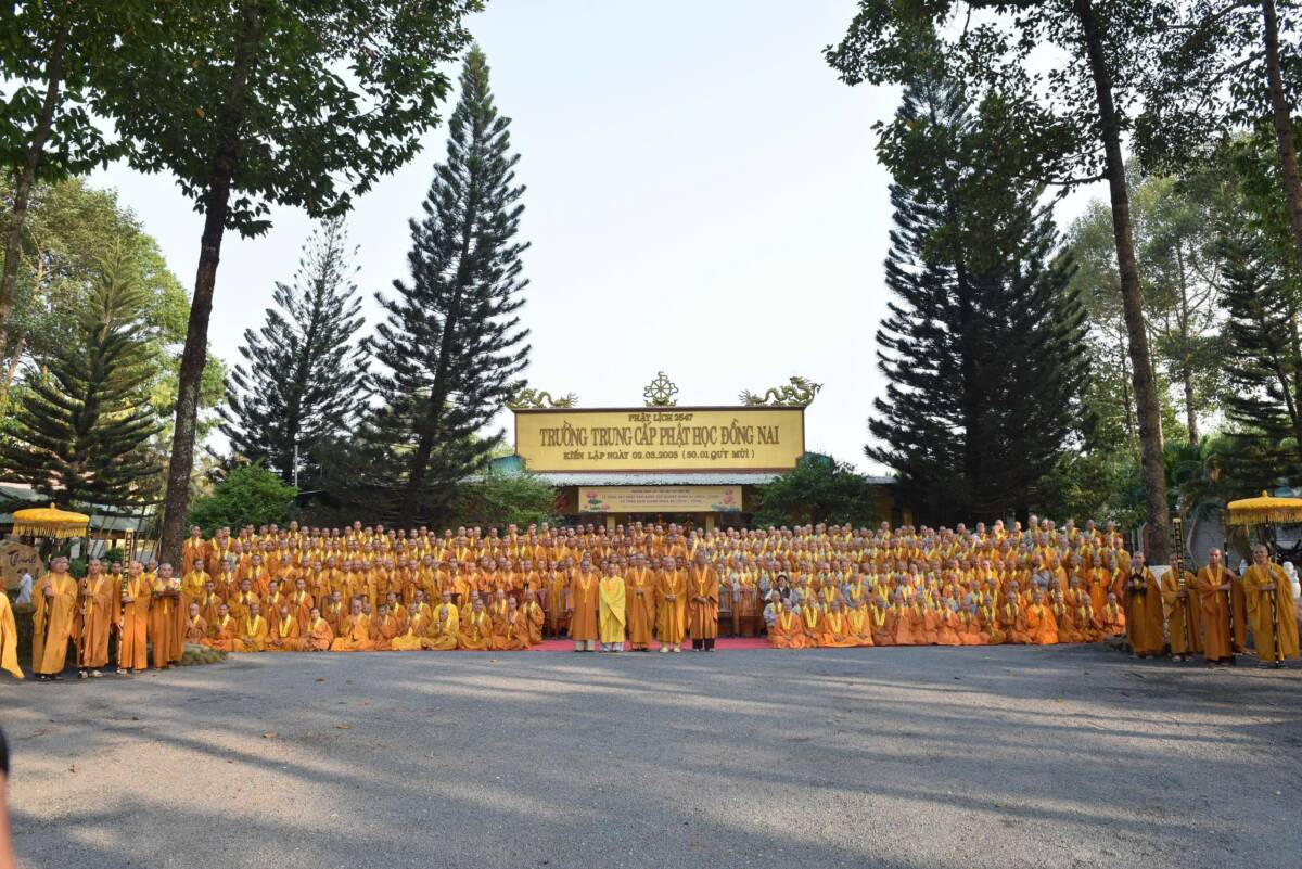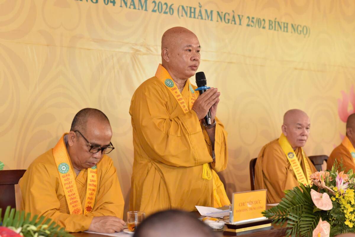 Dịp này, TT. Thích Quảng Ảnh báo cáo: “Căn cứ Quyết định số 17/QĐ-UBT ngày 05/01/1990 của Ủy ban Nhân dân tỉnh Đồng Nai, về việc thành lập Trường Cơ bản Phật học tỉnh Đồng Nai, nay là Trường TCPH tỉnh Đồng Nai. Căn cứ Quyết định số 171/QD-BTS ngày 27/03/2025, của Ban Tri sự Giáo hội Phật giáo Việt Nam tỉnh Đồng Nai về việc bổ nhiệm Ban Giám hiệu Trường Trung cấp Phật học tỉnh Đồng Nai. Trong suốt 35 năm qua, Trường Trung cấp Phật học tỉnh Đồng Nai đã hoàn thành công tác giáo dục từ năm 1990 đến năm 2026 với kết quả đáng quý. Khóa XII (2026 – 2029) có 451 Tăng Ni sinh đã thi tuyển, hiện đang học năm thứ nhất tại 8 lớp học của Nhà trường, cụ thể: cơ sở Tăng tại chùa Phật Hiện, cơ sở Ni tại chùa Huệ Giác, cơ sở Thiền viện Thường Chiếu, Linh Chiếu, Trí Đức Ni, Tịnh xá Ngọc Uyển, Quan Âm tu viện và Thiền viện Phước Sơn.