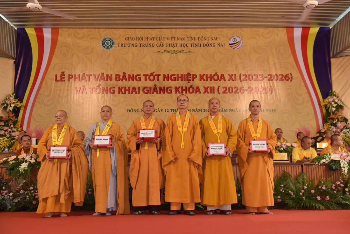 PGĐS – Nhằm kết thúc khóa XI niên khóa XI (2023 – 2026) và Khai giảng niên khóa XII (2026 – 2029), sáng ngày 12/4/2026 (25/02AL năm Bính Ngọ), Ban Giám hiệu của Trường Trung cấp Phật học tỉnh Đồng Nai long trọng tổ chức Lễ Tổng kết Phát văn bằng Tốt nghiệp khóa XI (2023 – 2026) và Tổng Khai giảng khóa XII (2026 – 2029).